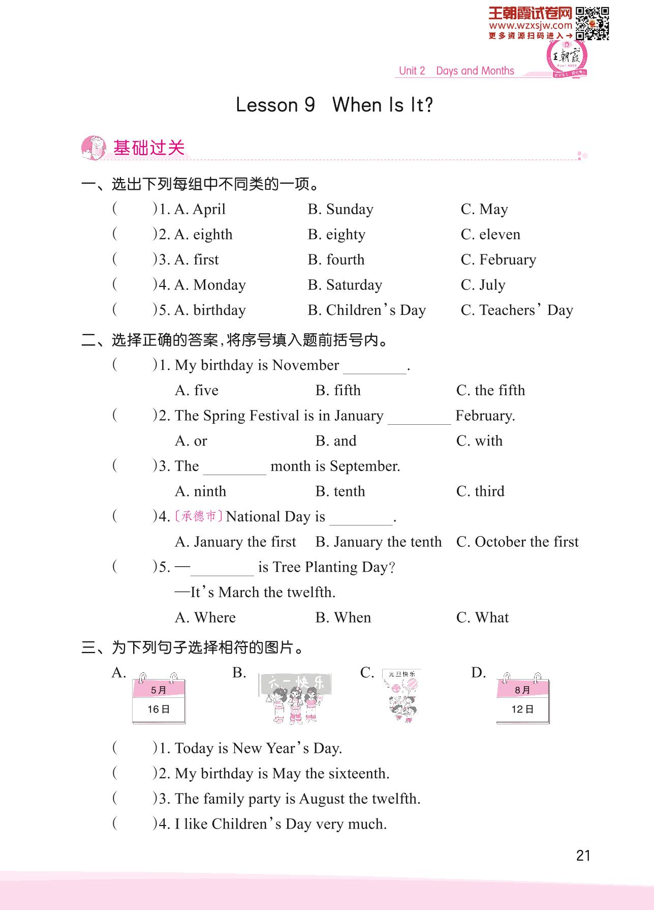 2023下册四年级英语冀教版 Unit 2—Lesson 9 When Is It?
