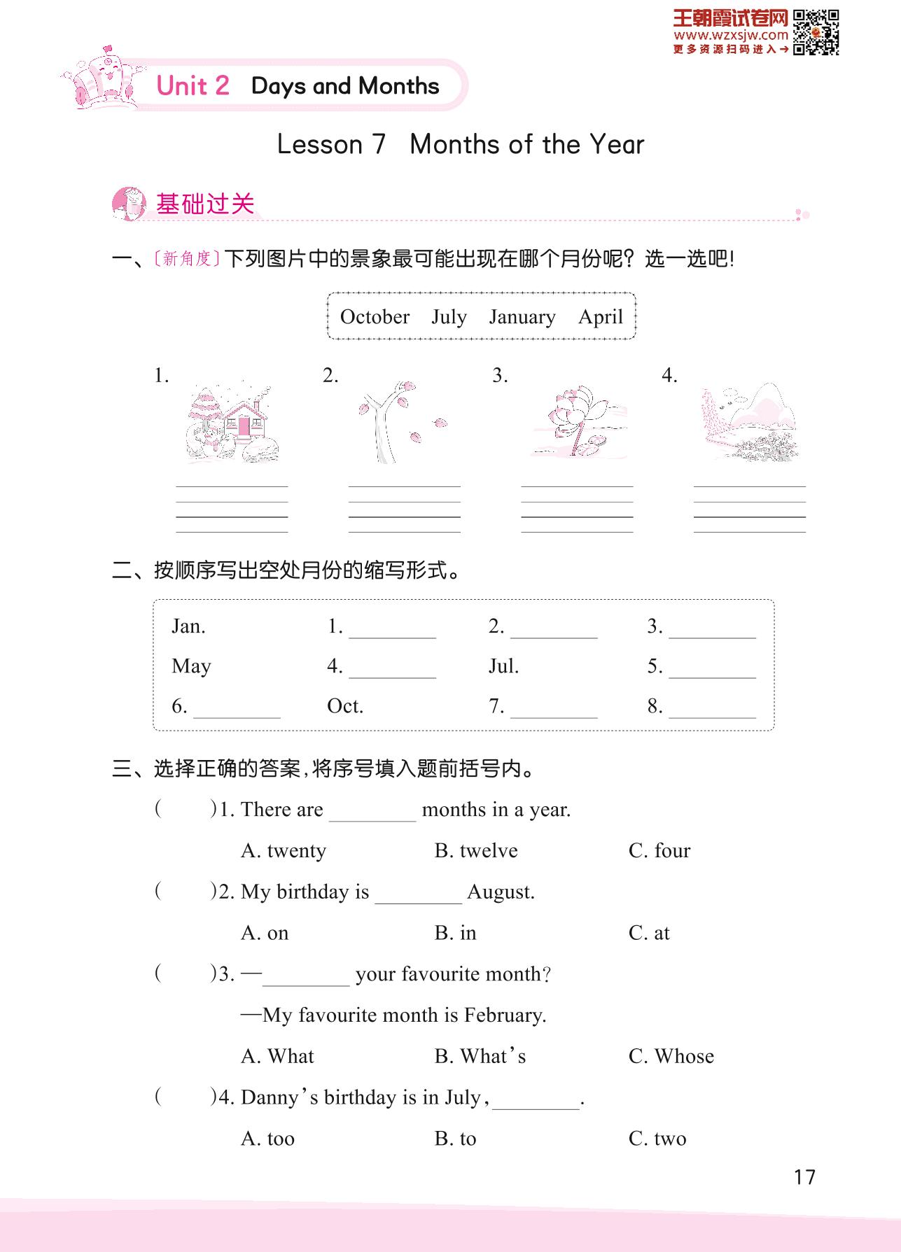 2023下册四年级英语冀教版 Unit 2—Lesson 7 Months of the Year