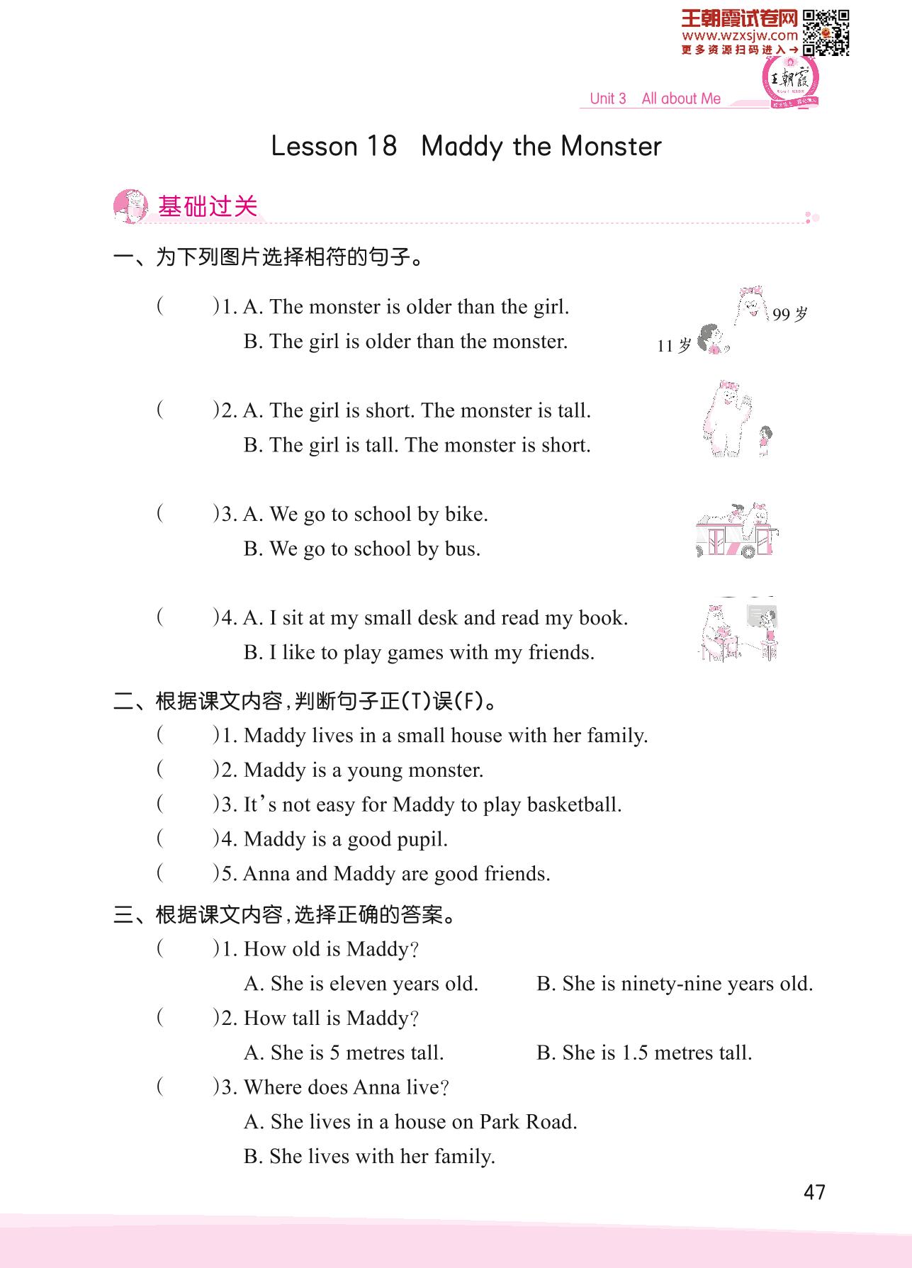 2023下册四年级英语冀教版 Unit 3—Lesson 18 Maddy the Monster