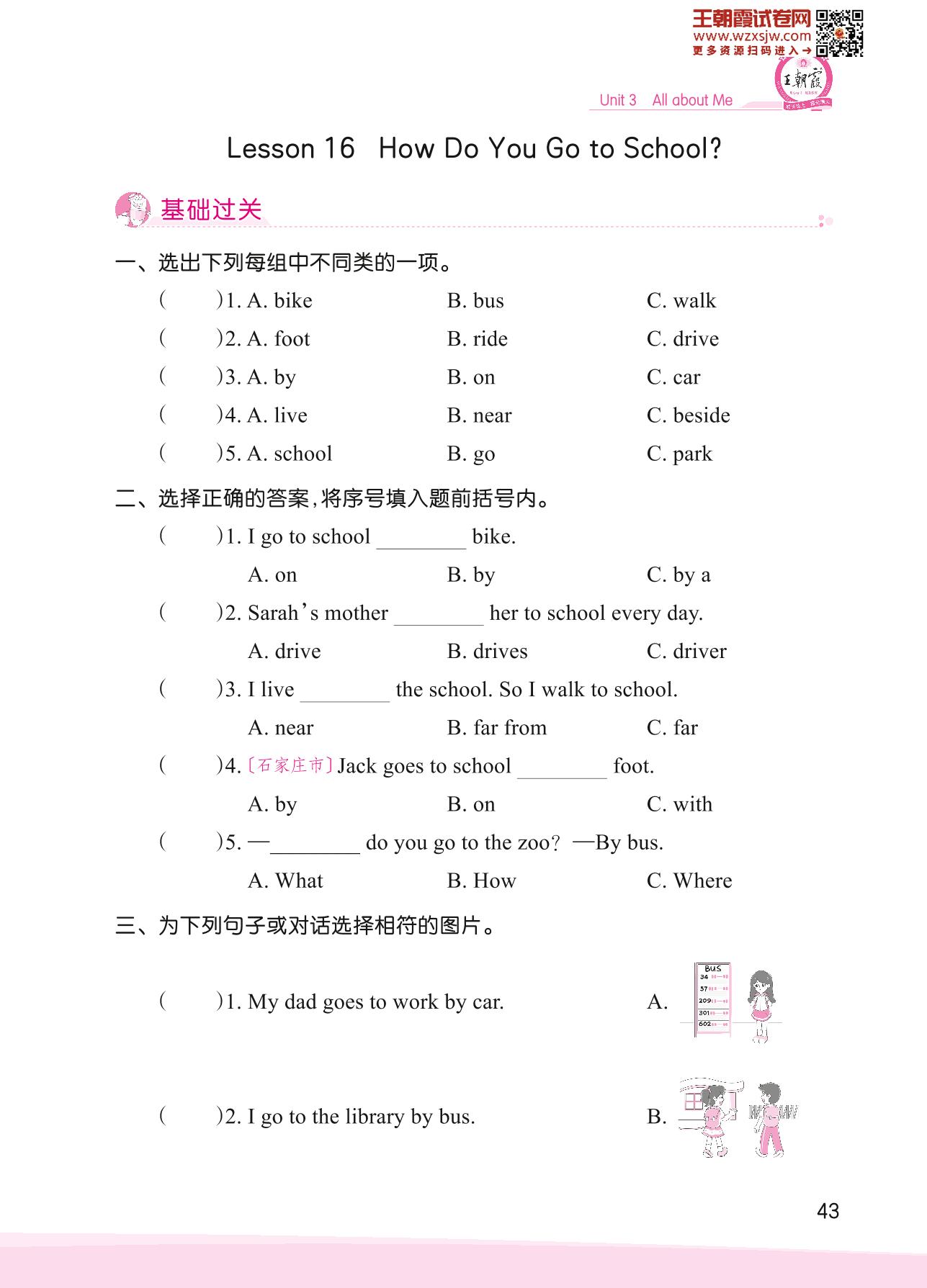 2023下册四年级英语冀教版 Unit 3—Lesson 16 How Do You Go to School?