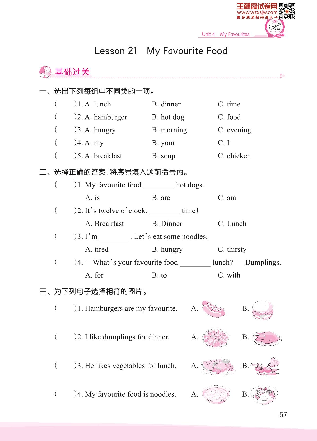 2023下册四年级英语冀教版 Unit 4—Lesson 21 My Favourite Food