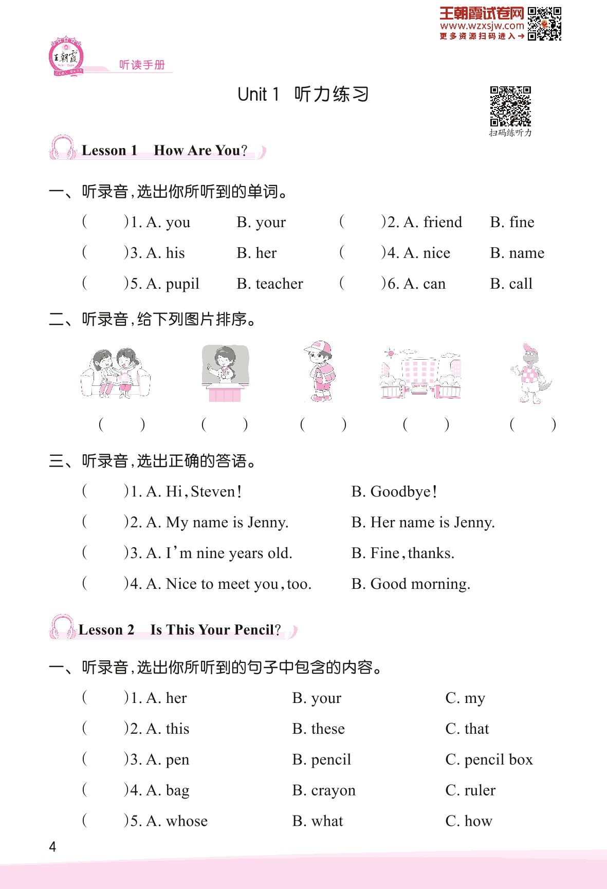2023下册四年级英语冀教版 Unit 1 Hello Again!—Lesson 1-5听力练习