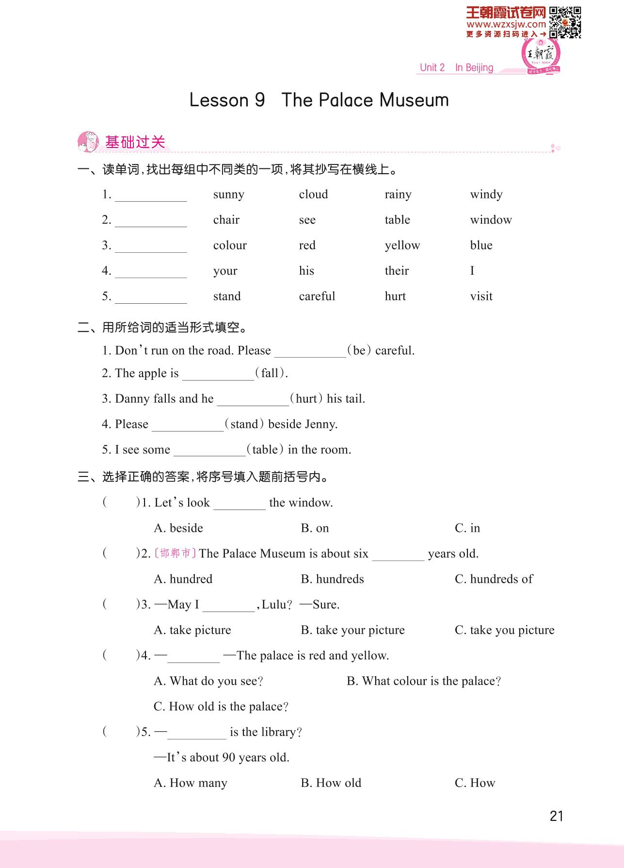 2023下册五年级英语冀教版 Unit 2—Lesson 9 The Palace Museum