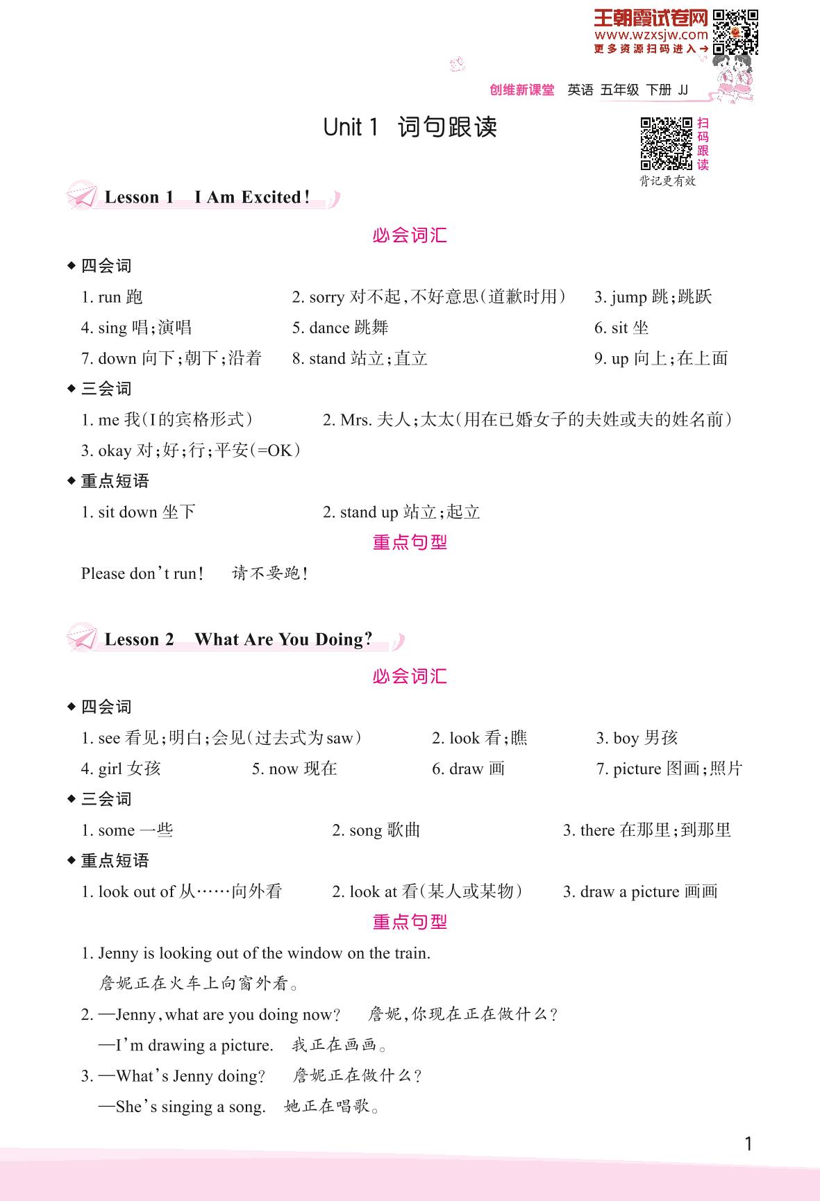 2023下册五年级英语冀教版 Unit 1 Going to Beijing—词句跟读