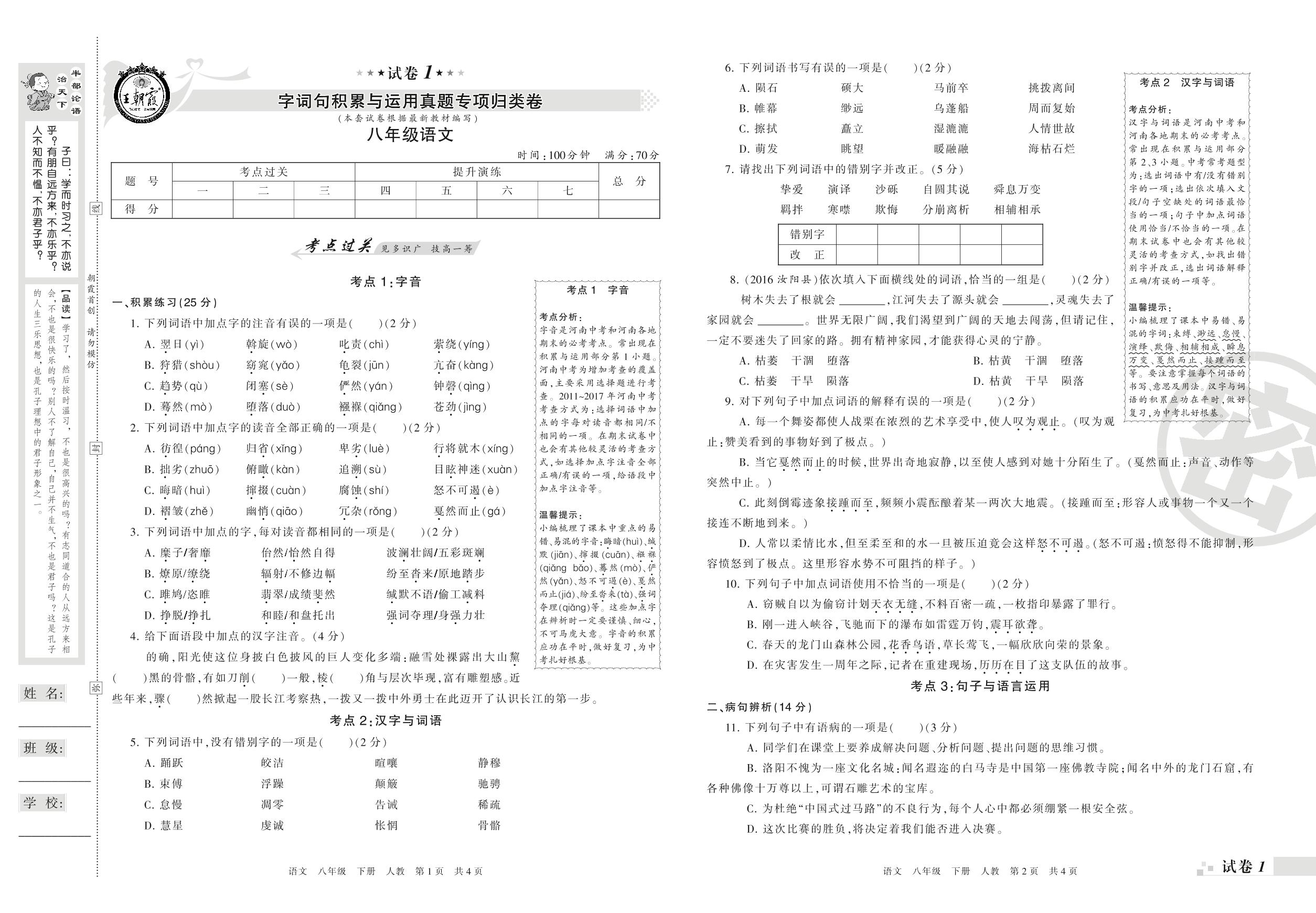 八年级语文人教版下册专项卷