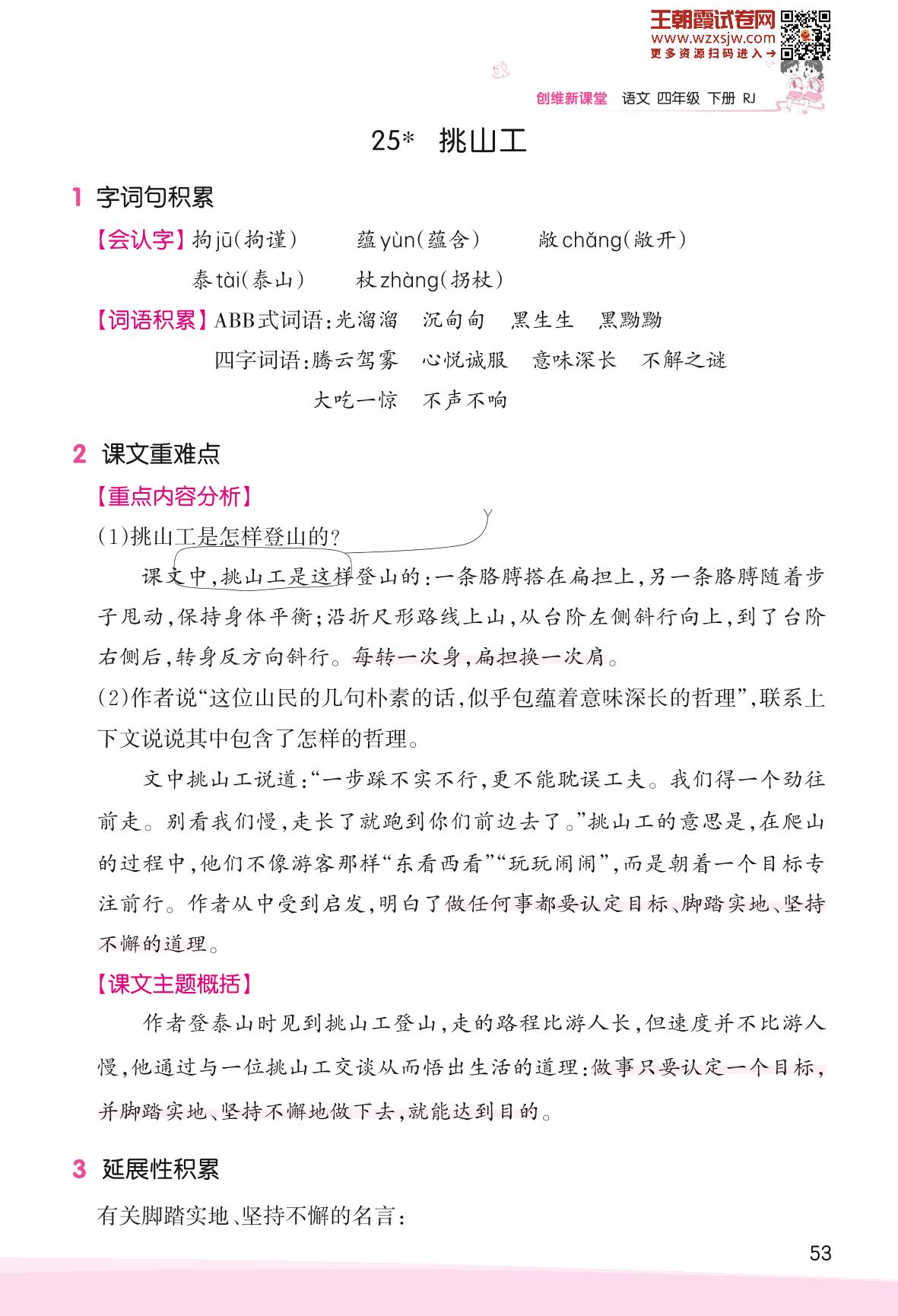 2023下册四年级语文人教版 助学手册 第七单元——25 挑山工