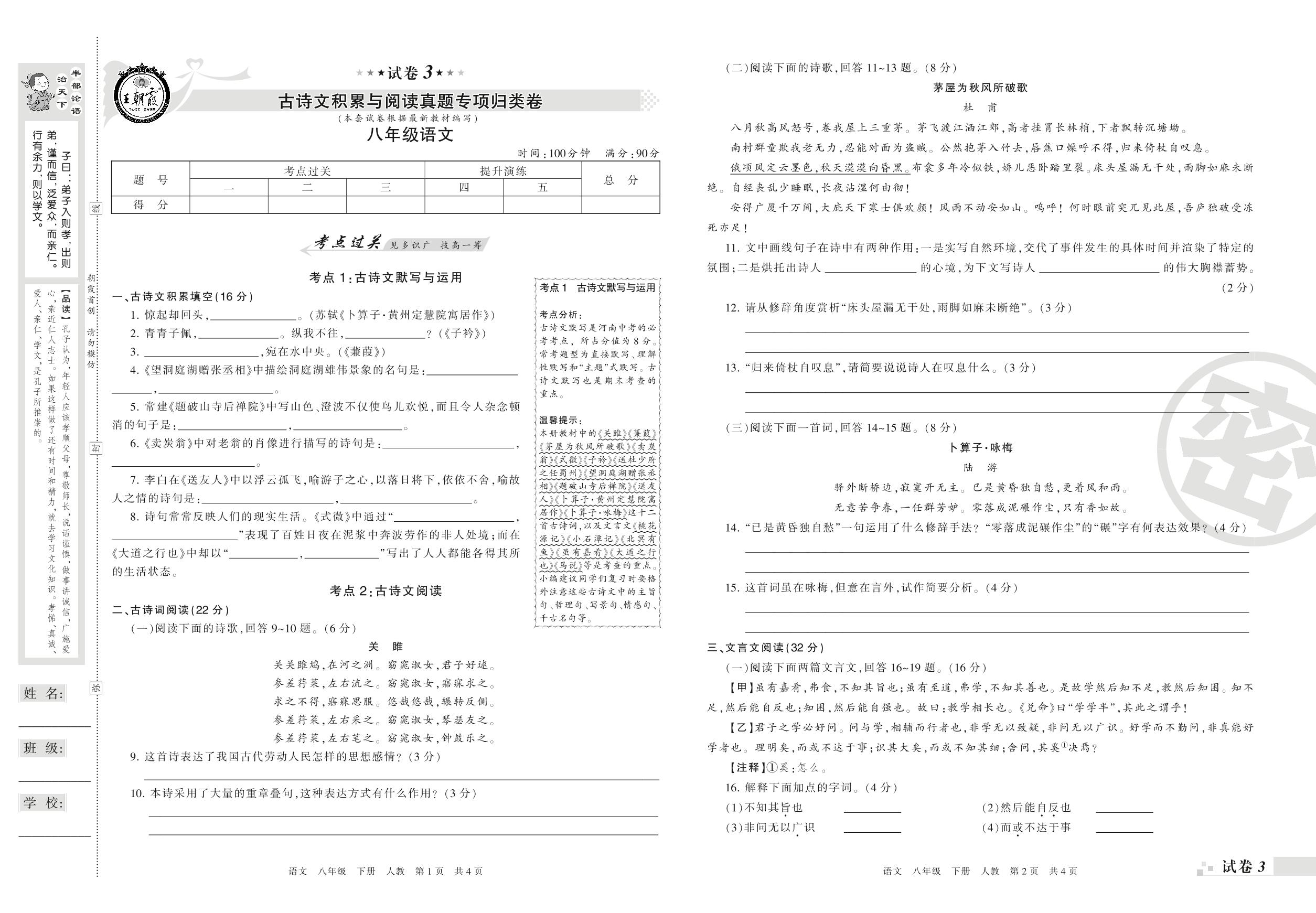 王朝霞期末专项卷——古诗文积累与阅读真题专项归类卷八年级下册语文(人教版)_R210802192345【3】