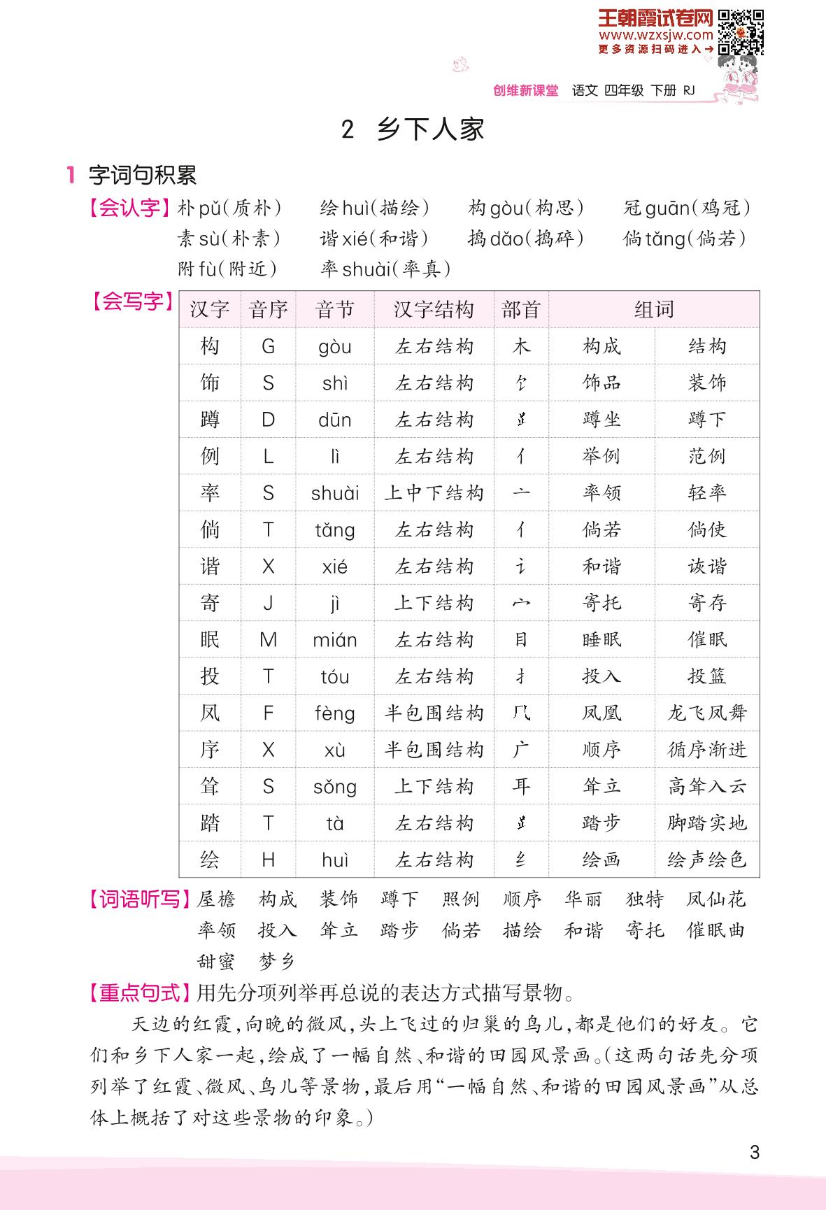 2023下册四年级语文人教版 助学手册 第一单元——2 乡下人家