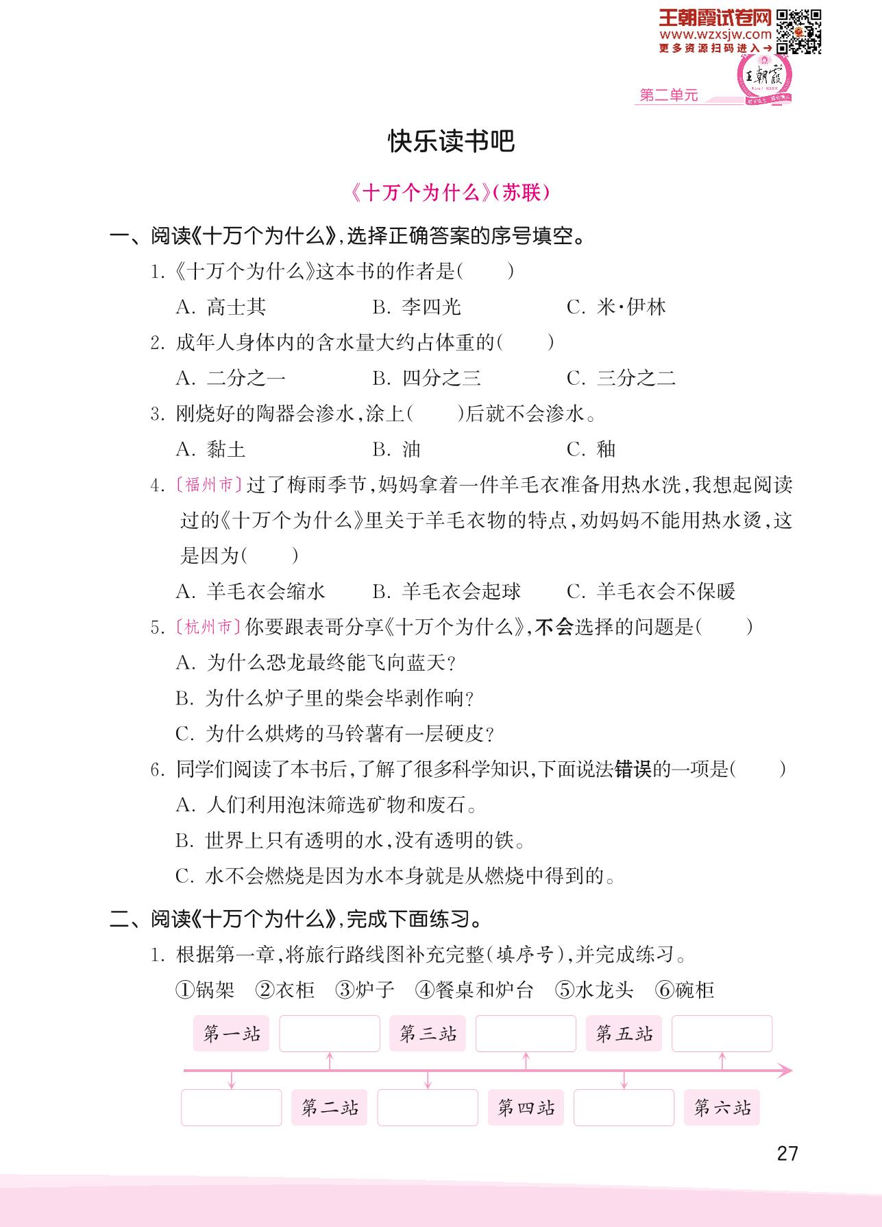 2023下册四年级语文人教版 第二单元 科普——快乐读书吧