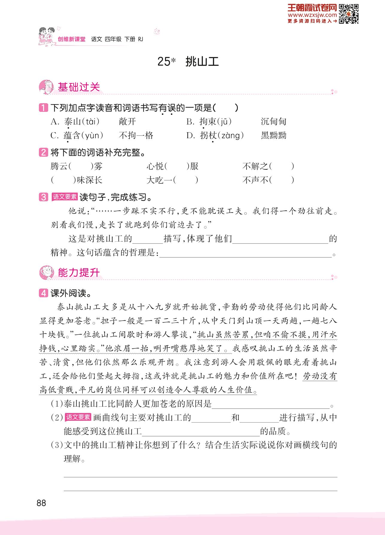 2023下册四年级语文人教版 第七单元 人物品质——25 挑山工