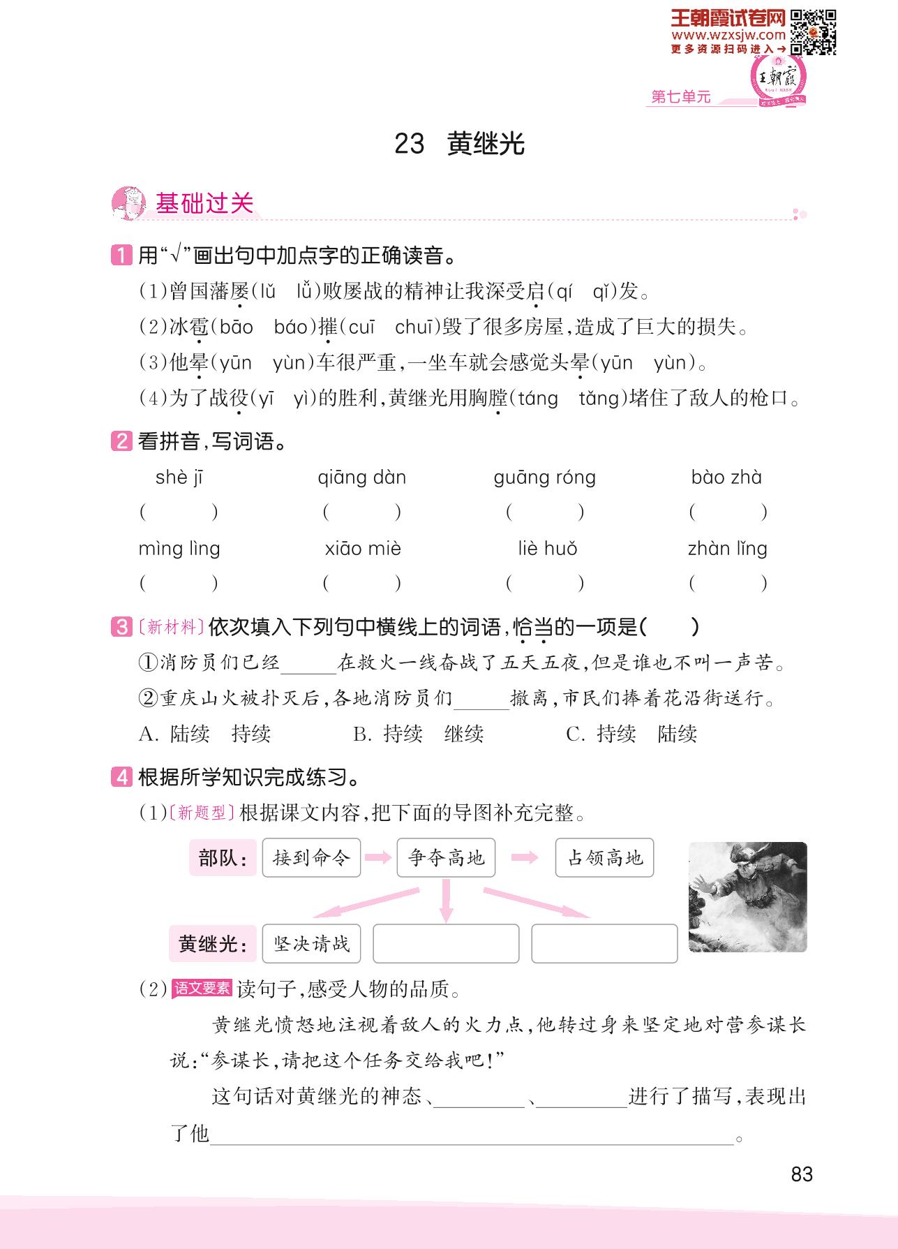 2023下册四年级语文人教版 第七单元 人物品质——23 黄继光