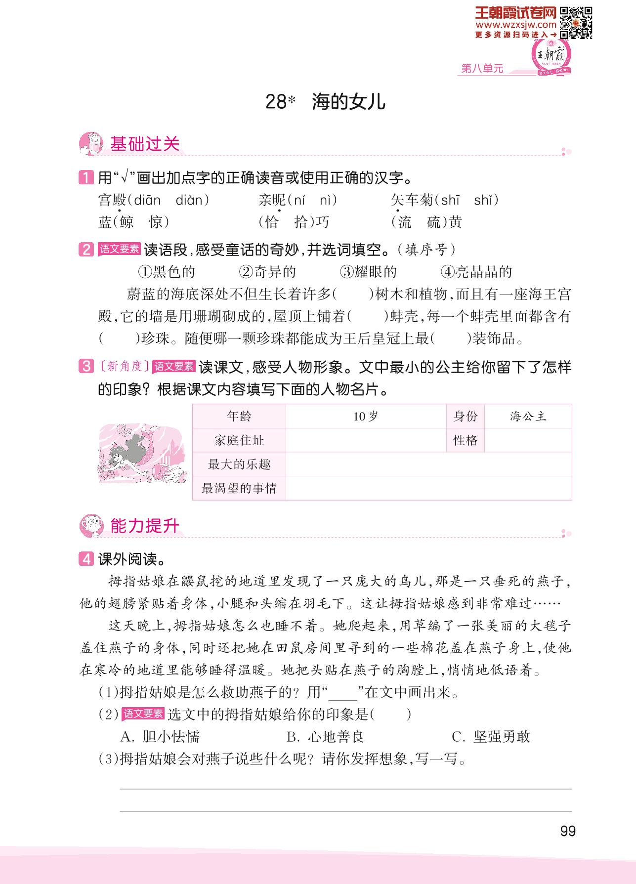 2023下册四年级语文人教版 第八单元 中外经典童话——28 海的女儿