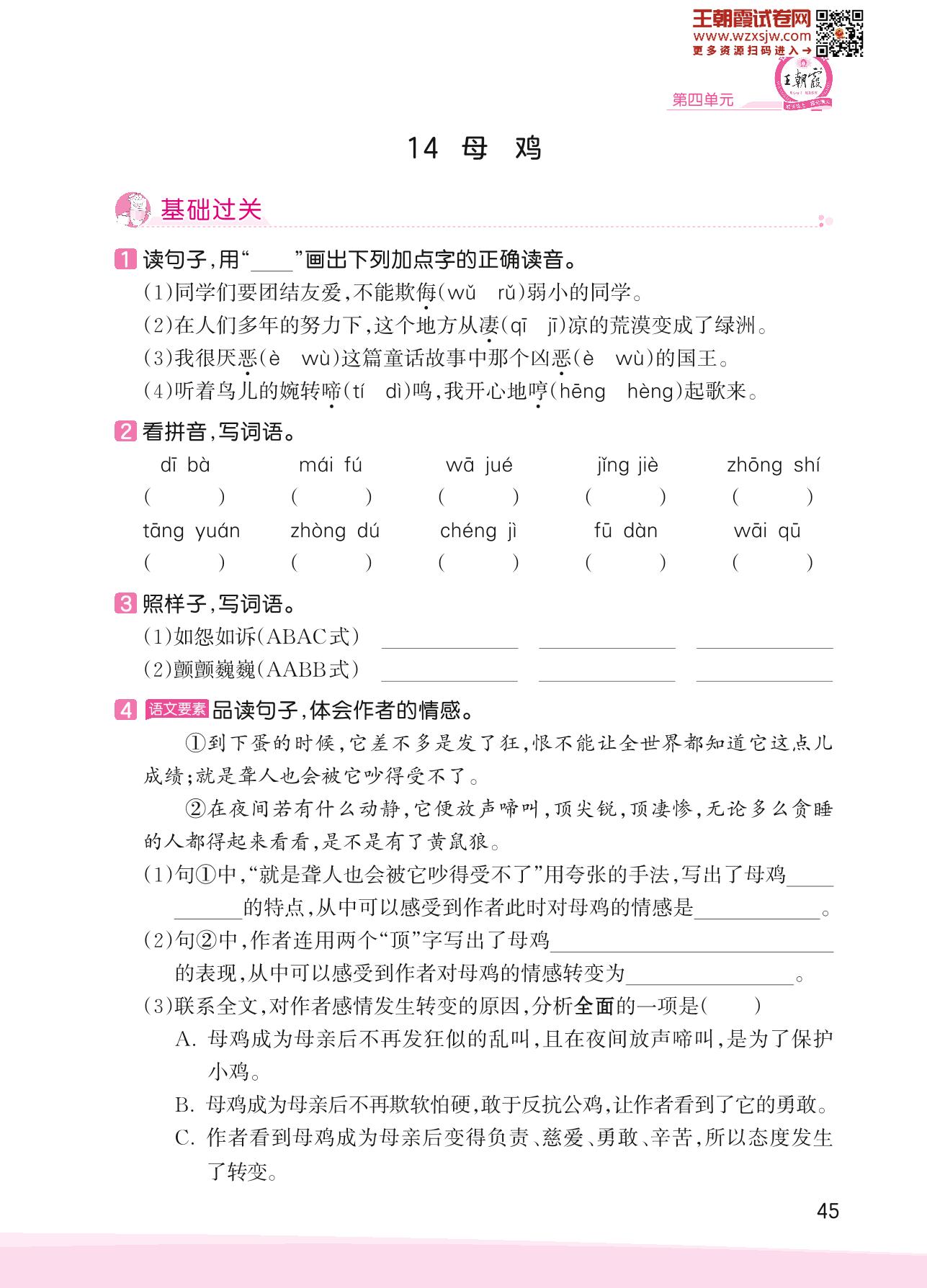 2023下册四年级语文人教版 第四单元 作家笔下的动物——14 母鸡