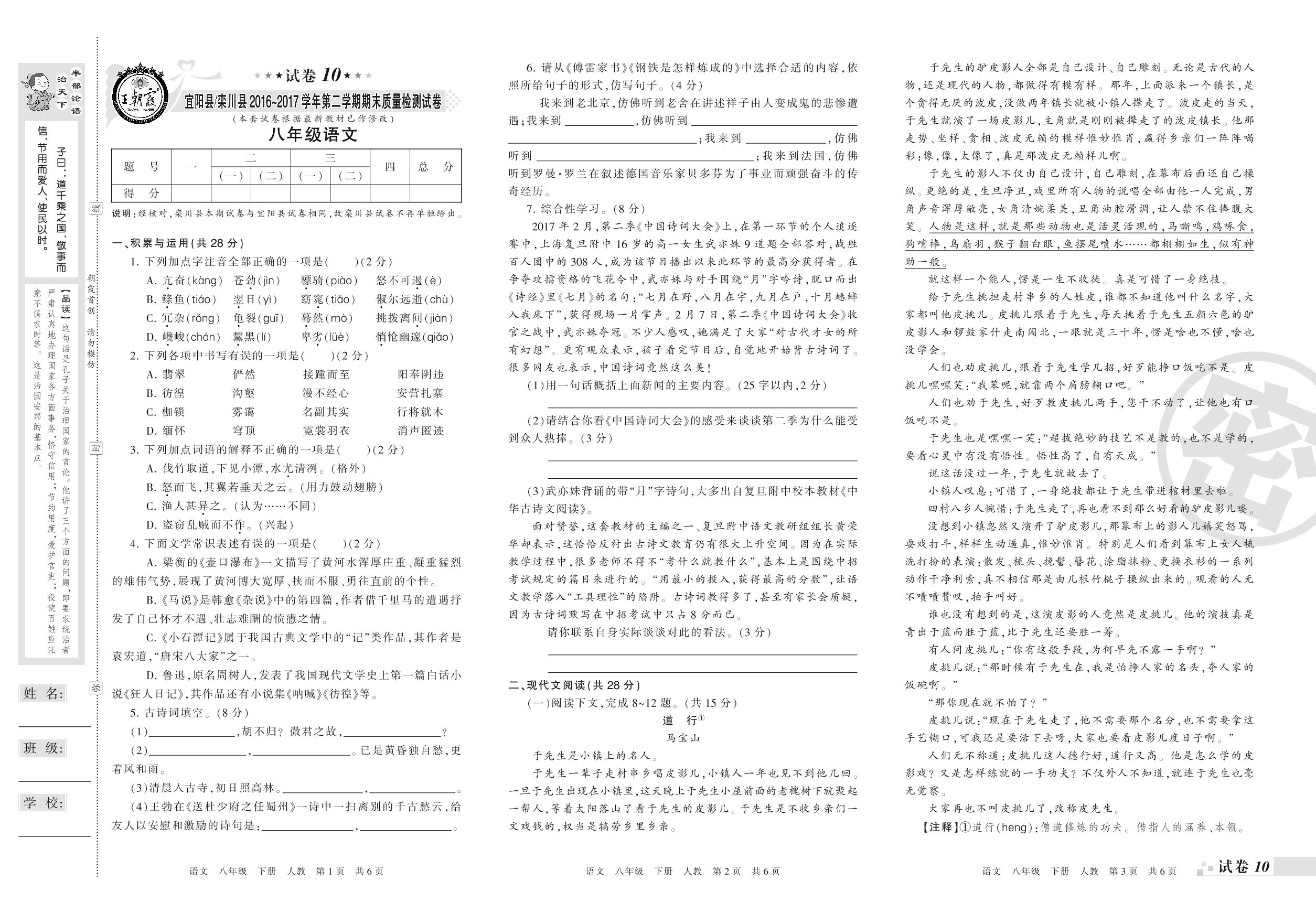 2016-2017学年第二学期洛阳市宜阳县、栾川县八年级语文试卷(人教版)【10】