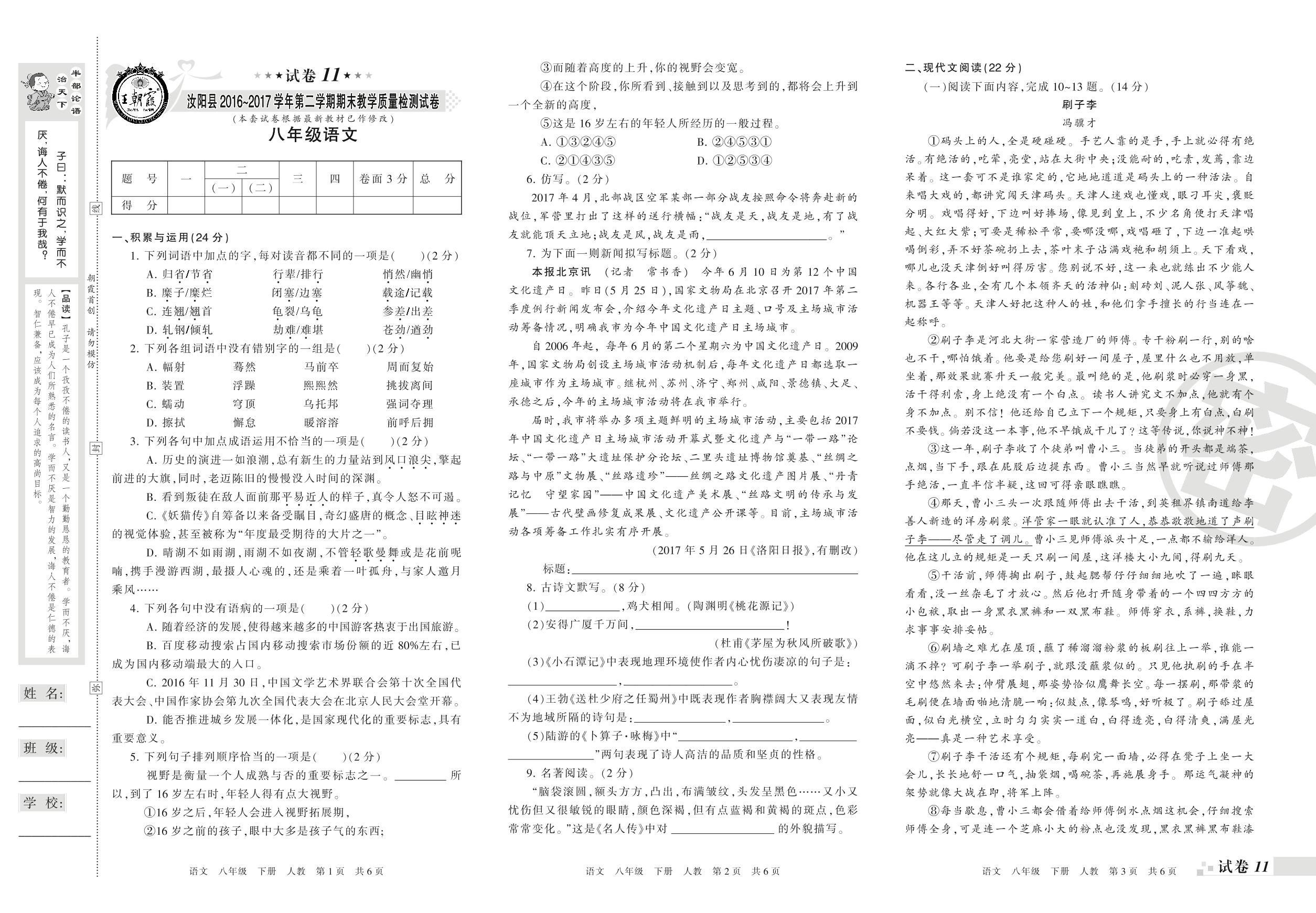 2016-2017学年第二学期洛阳市汝阳县八年级语文试卷(人教版)【11】