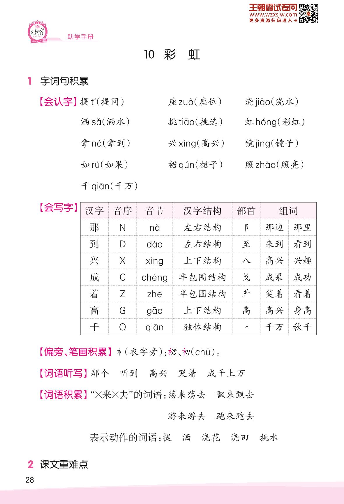2023下册一年级语文人教版 助学手册 第四单元——10 彩虹