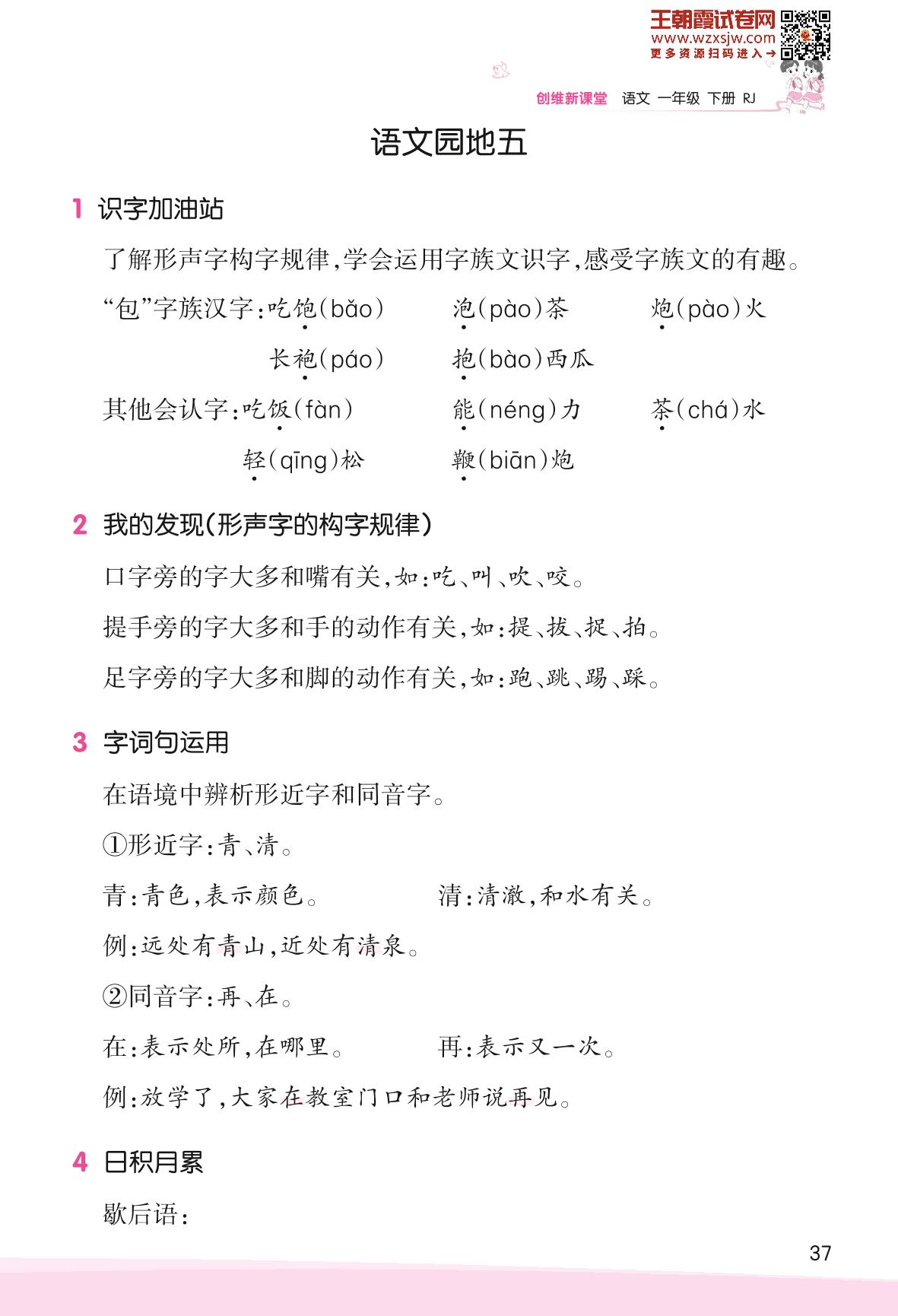 2023下册一年级语文人教版 助学手册 第五单元——语文园地五