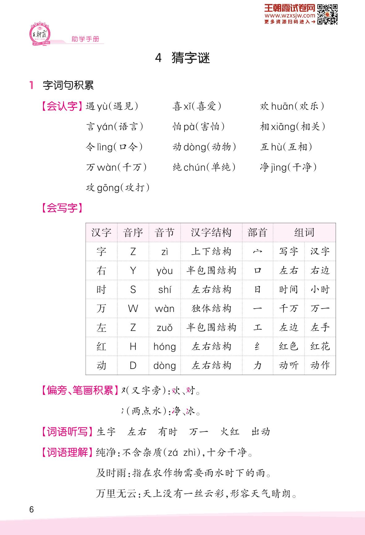 2023下册一年级语文人教版 助学手册 第一单元——4 猜字谜