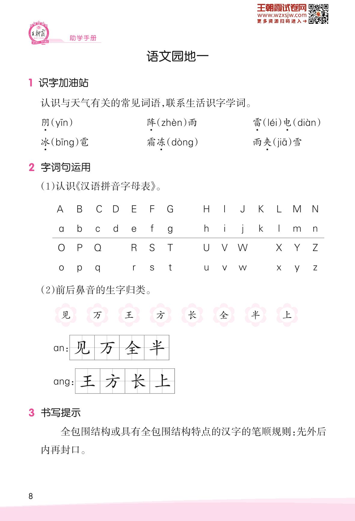2023下册一年级语文人教版 助学手册 第一单元——语文园地一
