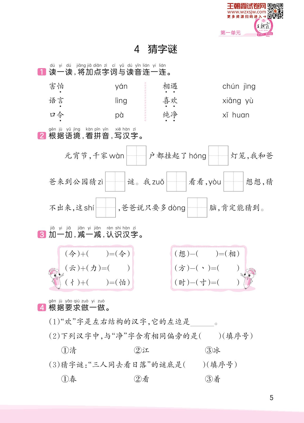 2023下册一年级语文人教版 第一单元 识字——4 猜字谜