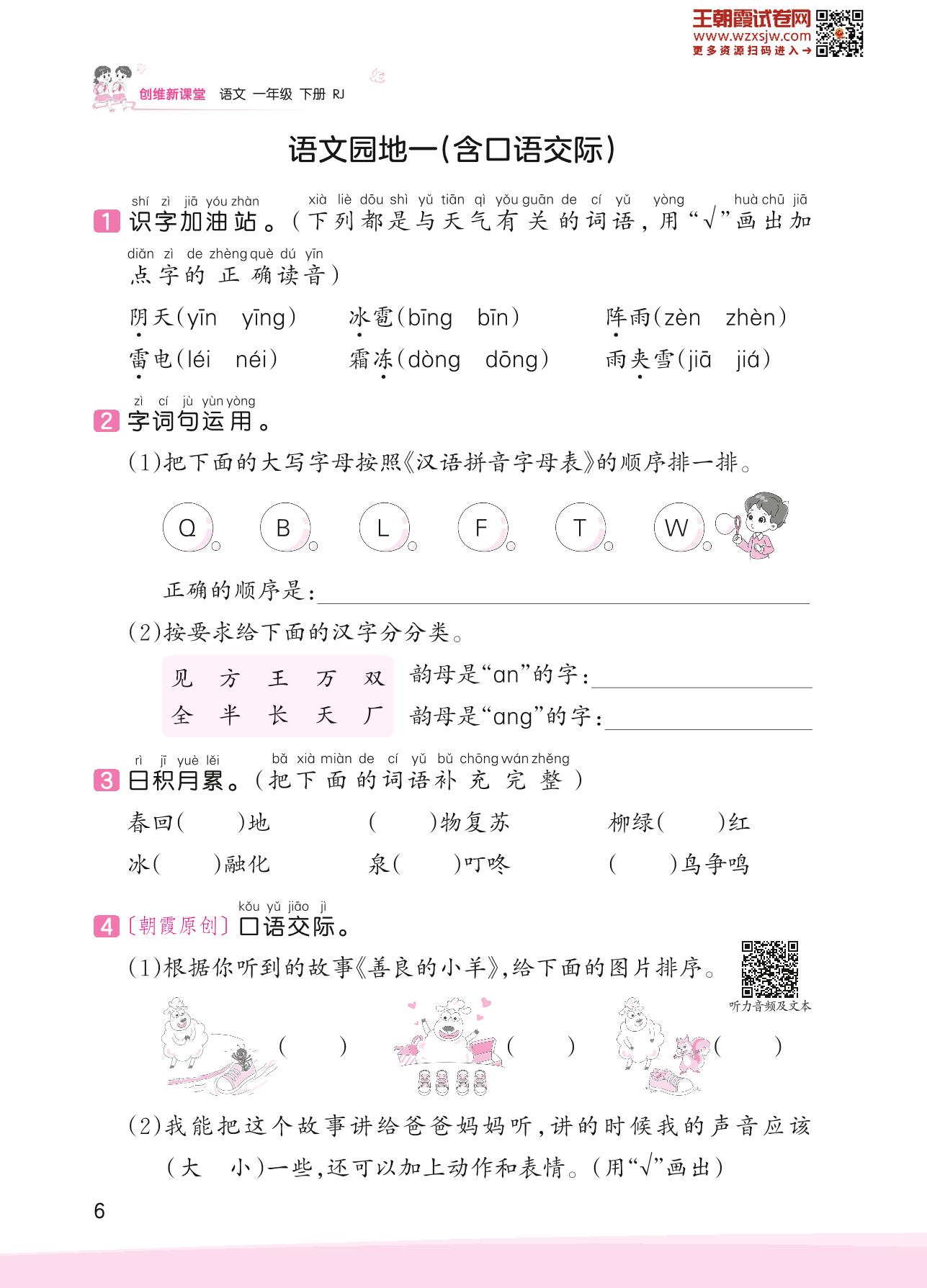 2023下册一年级语文人教版 第一单元 识字——语文园地一 [含口语交际]