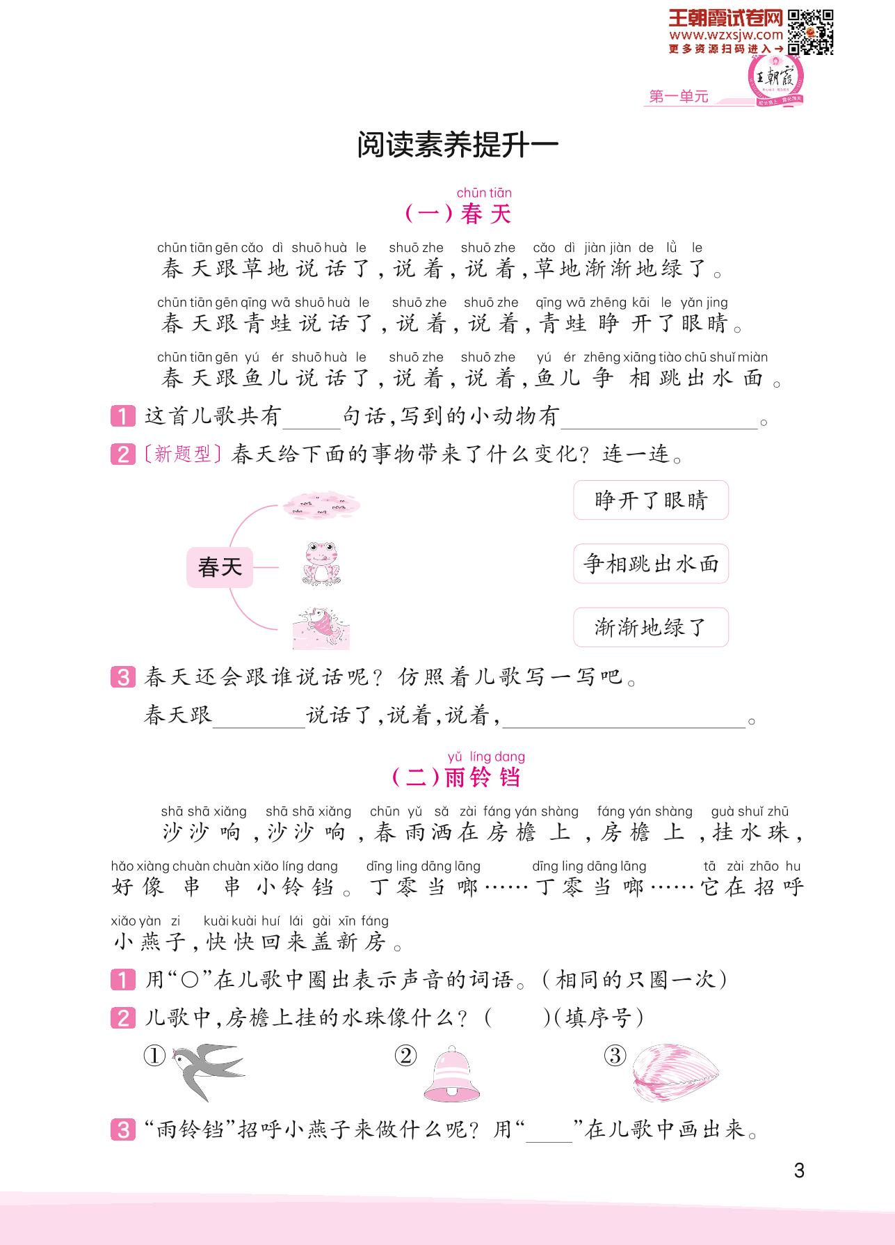 2023下册一年级语文人教版 第一单元 识字——阅读素养提升一