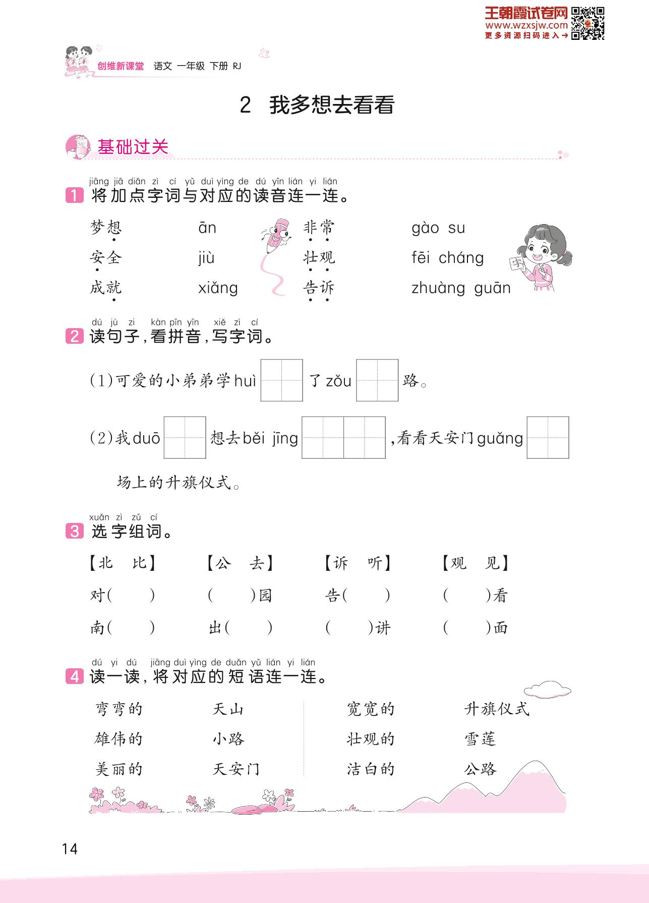 2023下册一年级语文人教版 第二单元 心愿——2 我多想去看看