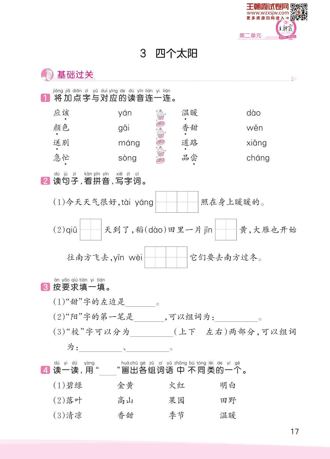 2023下册一年级语文人教版 第二单元 心愿——3 四个太阳