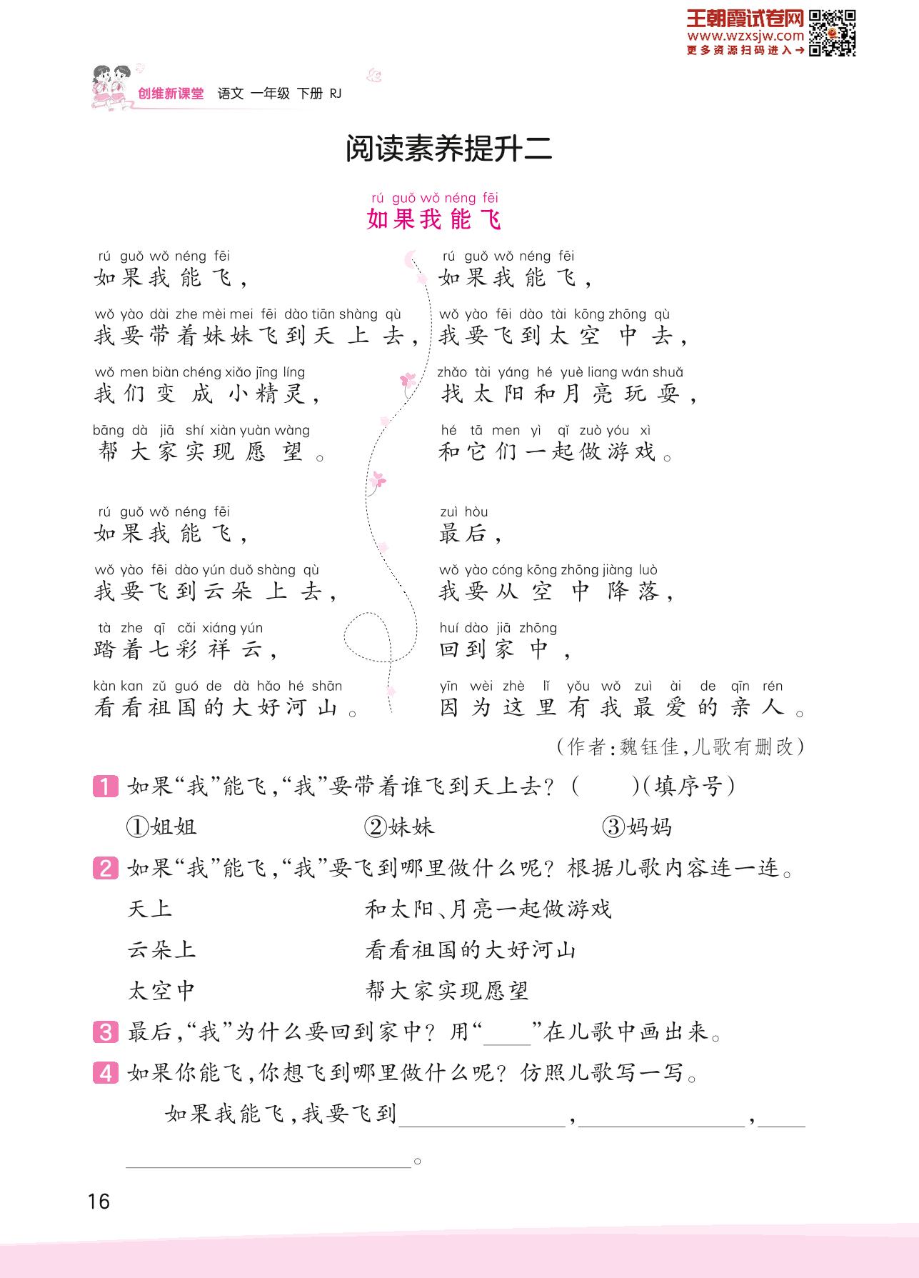 2023下册一年级语文人教版 第二单元 心愿——阅读素养提升二