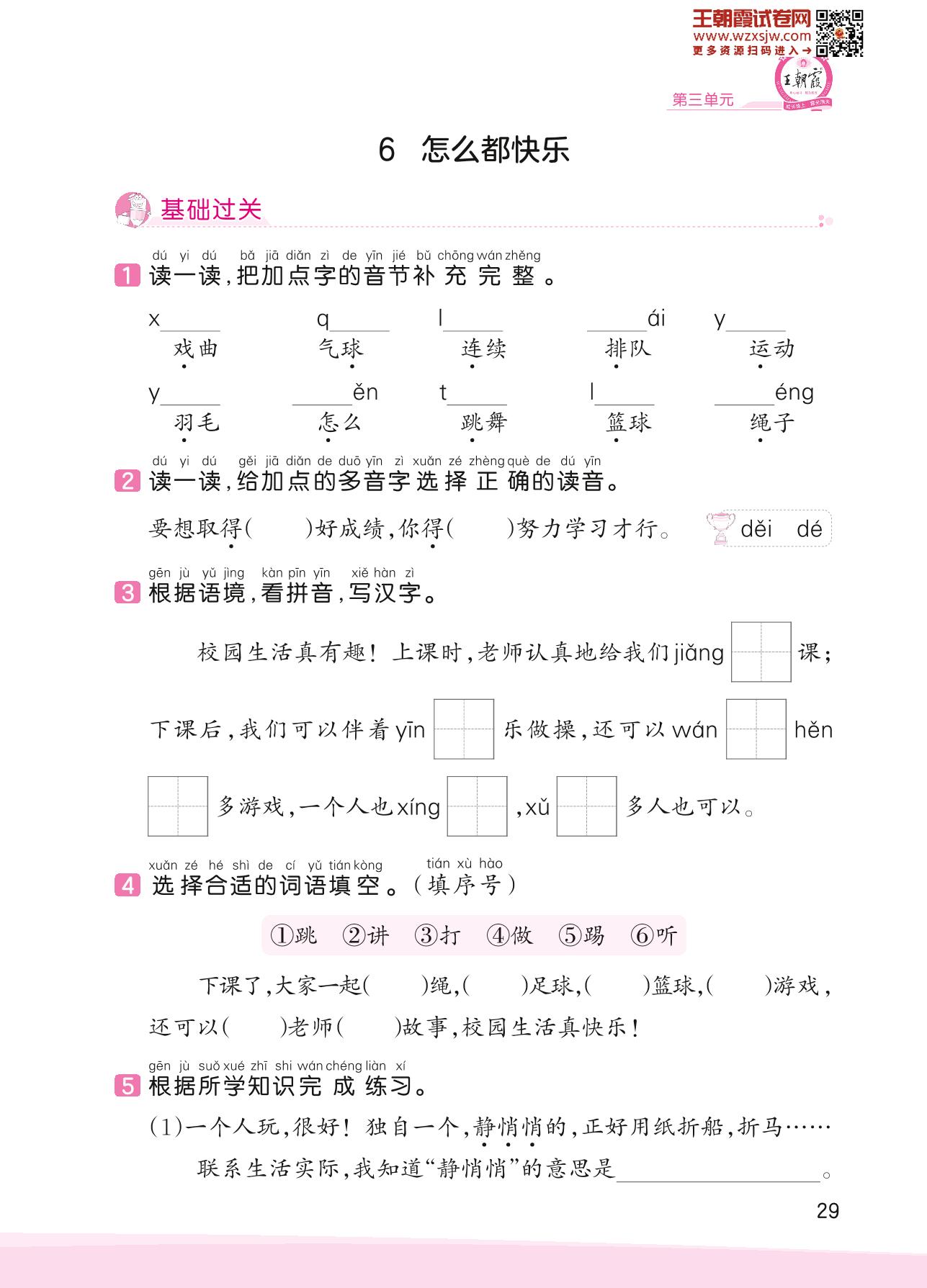 2023下册一年级语文人教版 第三单元 伙伴——6 怎么都快乐