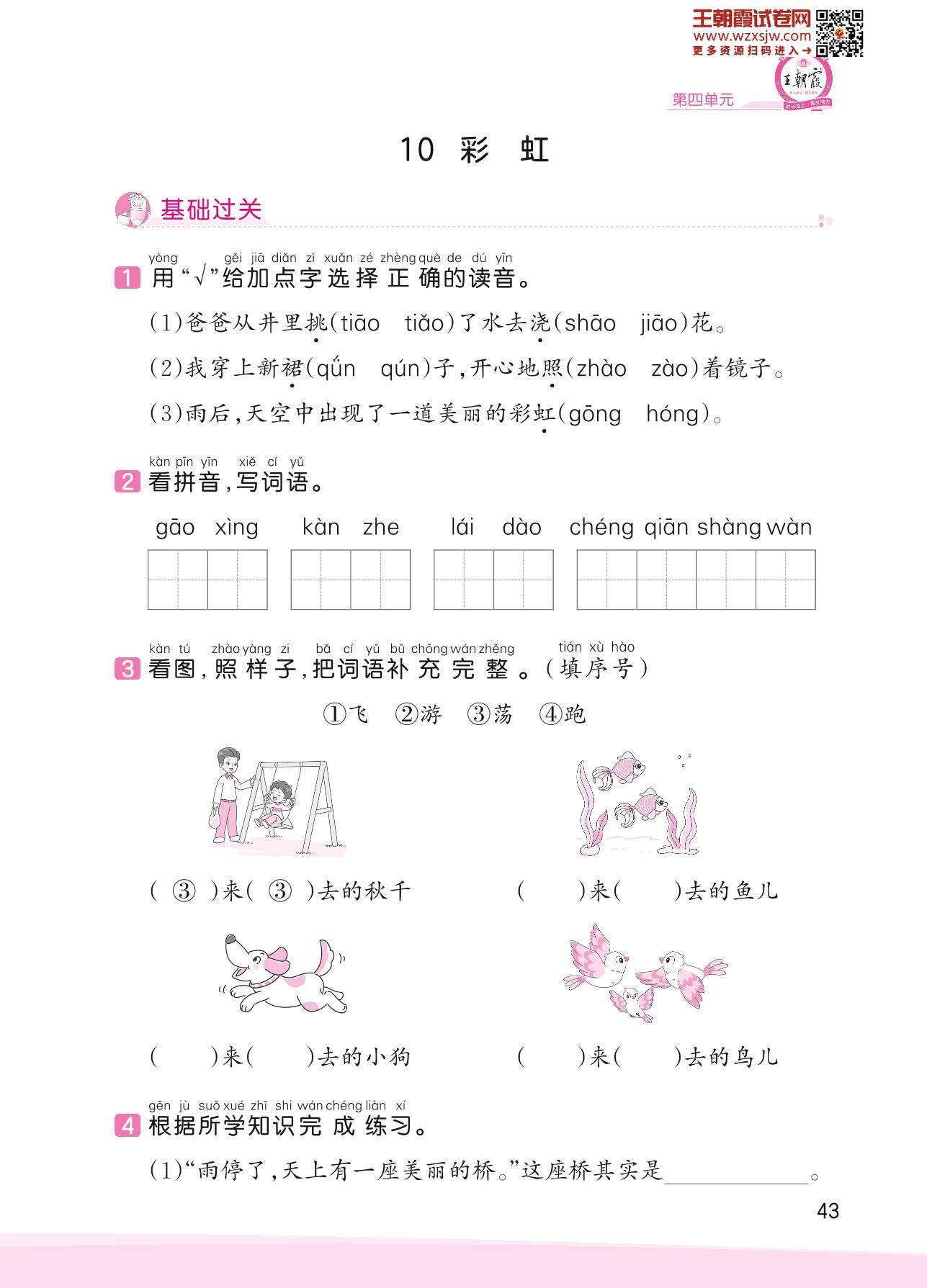 2023下册一年级语文人教版 第四单元 家人——10 彩虹