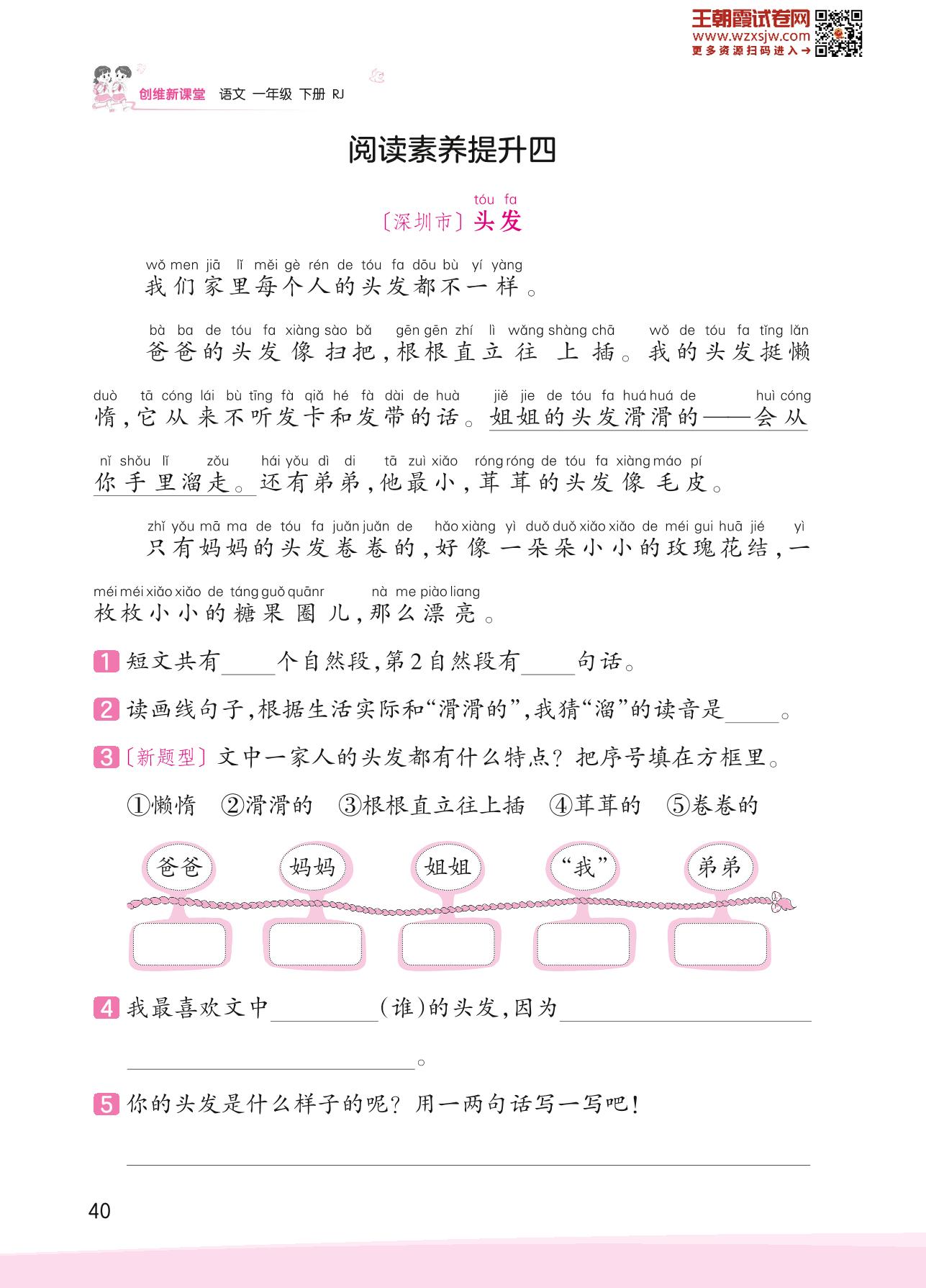 2023下册一年级语文人教版 第四单元 家人——阅读素养提升四