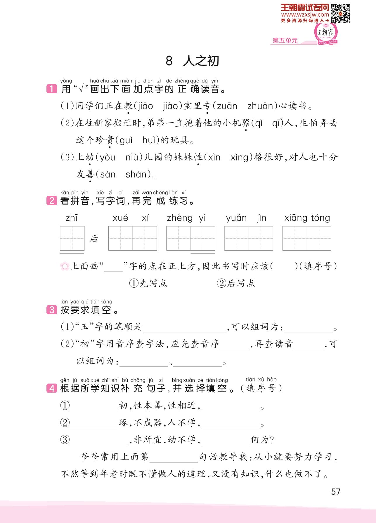 2023下册一年级语文人教版 第五单元 识字——8 人之初