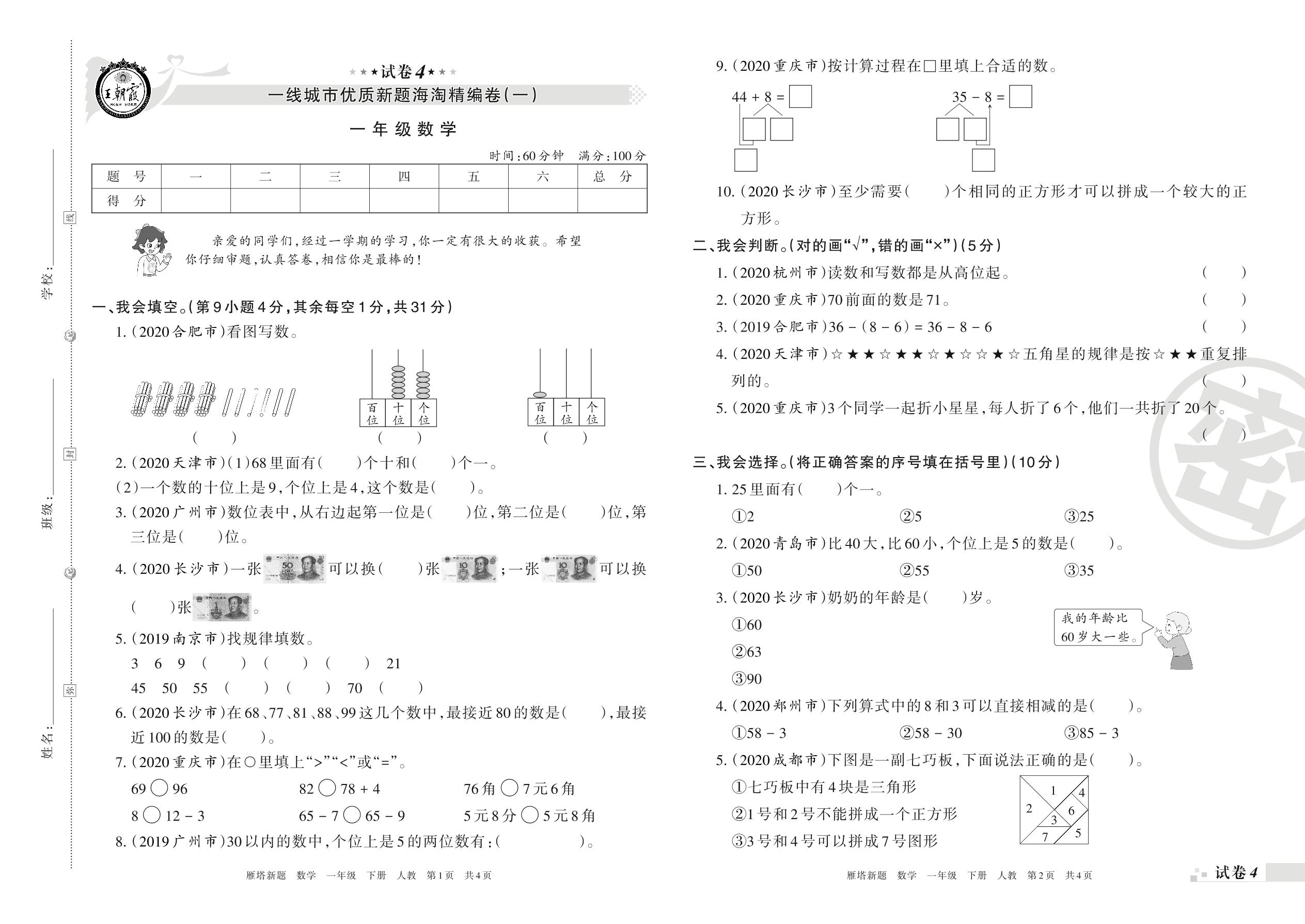 王朝霞海淘期末精编卷一年级下册数学(人教版)_R210802205056【4】