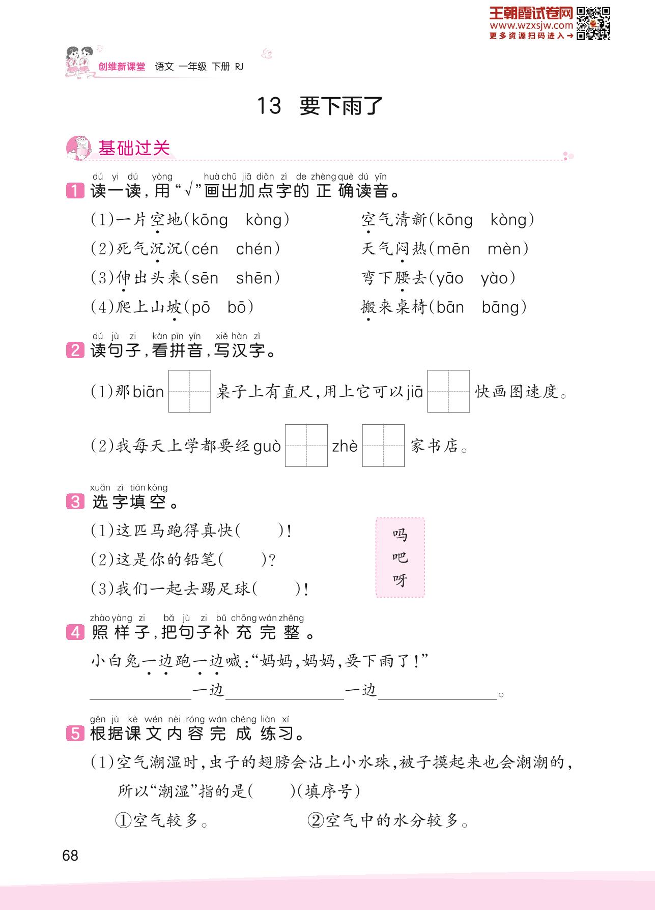 2023下册一年级语文人教版 第六单元 夏天——13 要下雨了