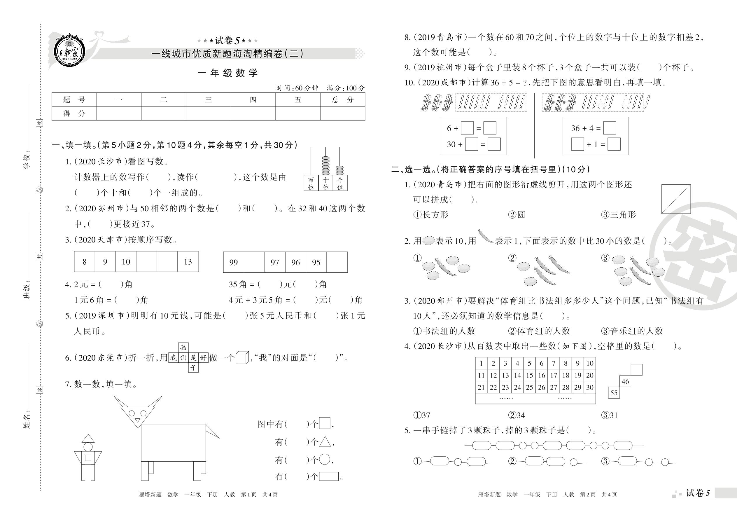王朝霞海淘期末精编卷一年级下册数学(人教版)_R210802205059【5】
