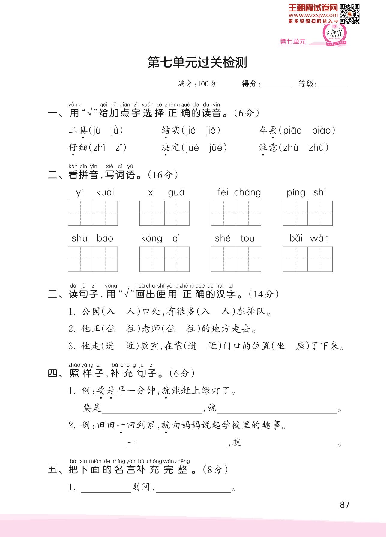 一年级语文人教版下册单元卷