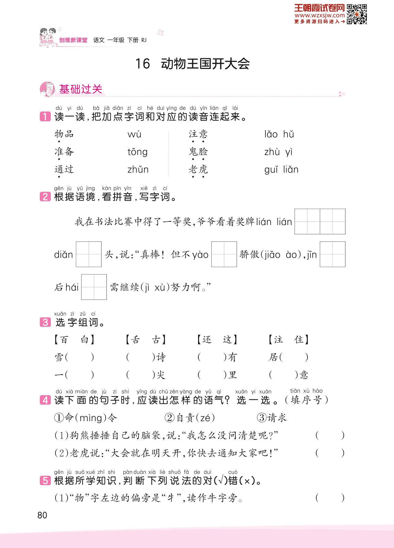 2023下册一年级语文人教版 第七单元 习惯——16 动物王国开大会