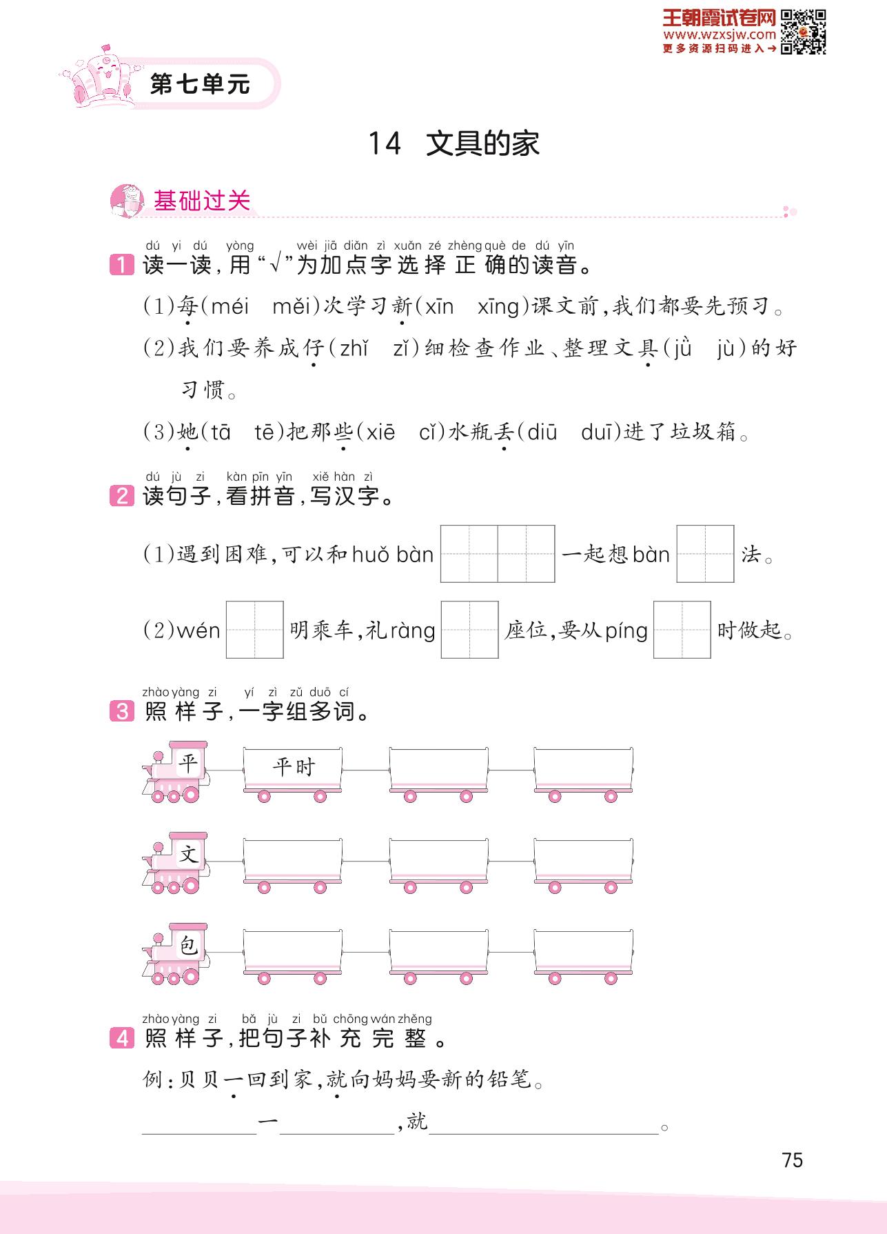 2023下册一年级语文人教版 第七单元 习惯——14 文具的家