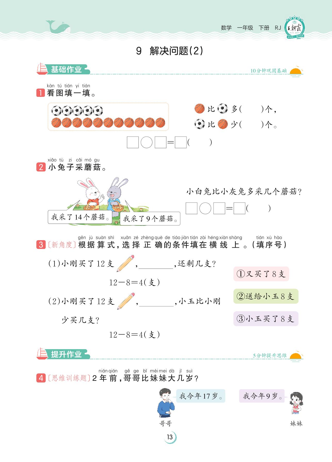 2023下册一年级数学人教版 第二单元 20以内的退位减法——9 解决问题(2)