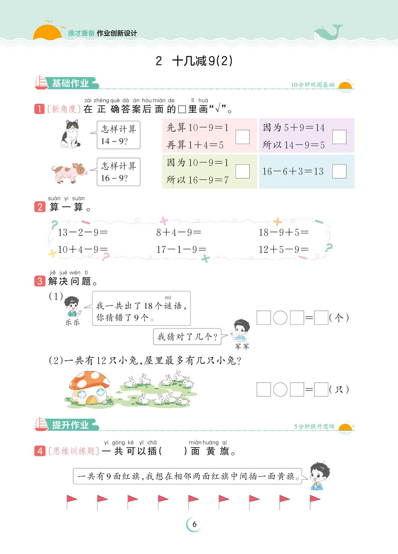 2023下册一年级数学人教版 第二单元 20以内的退位减法——2 十几减9(2)