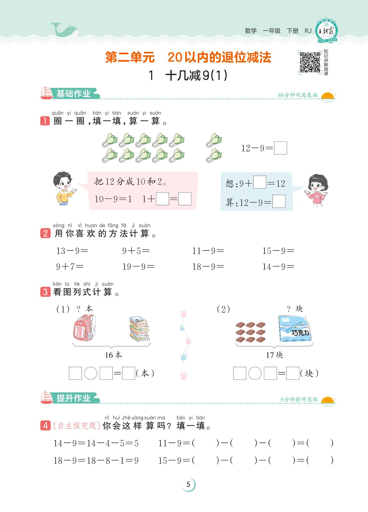 2023下册一年级数学人教版 第二单元 20以内的退位减法——1 十几减9(1)