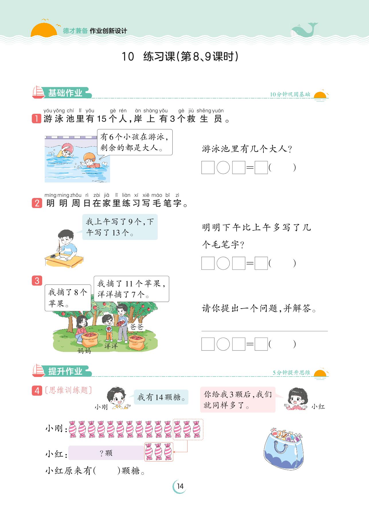 2023下册一年级数学人教版 第二单元 20以内的退位减法——10 练习课(第8、9课时)