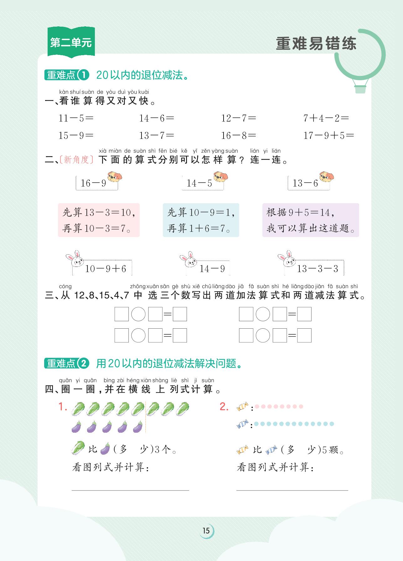 2023下册一年级数学人教版 第二单元重难易错练