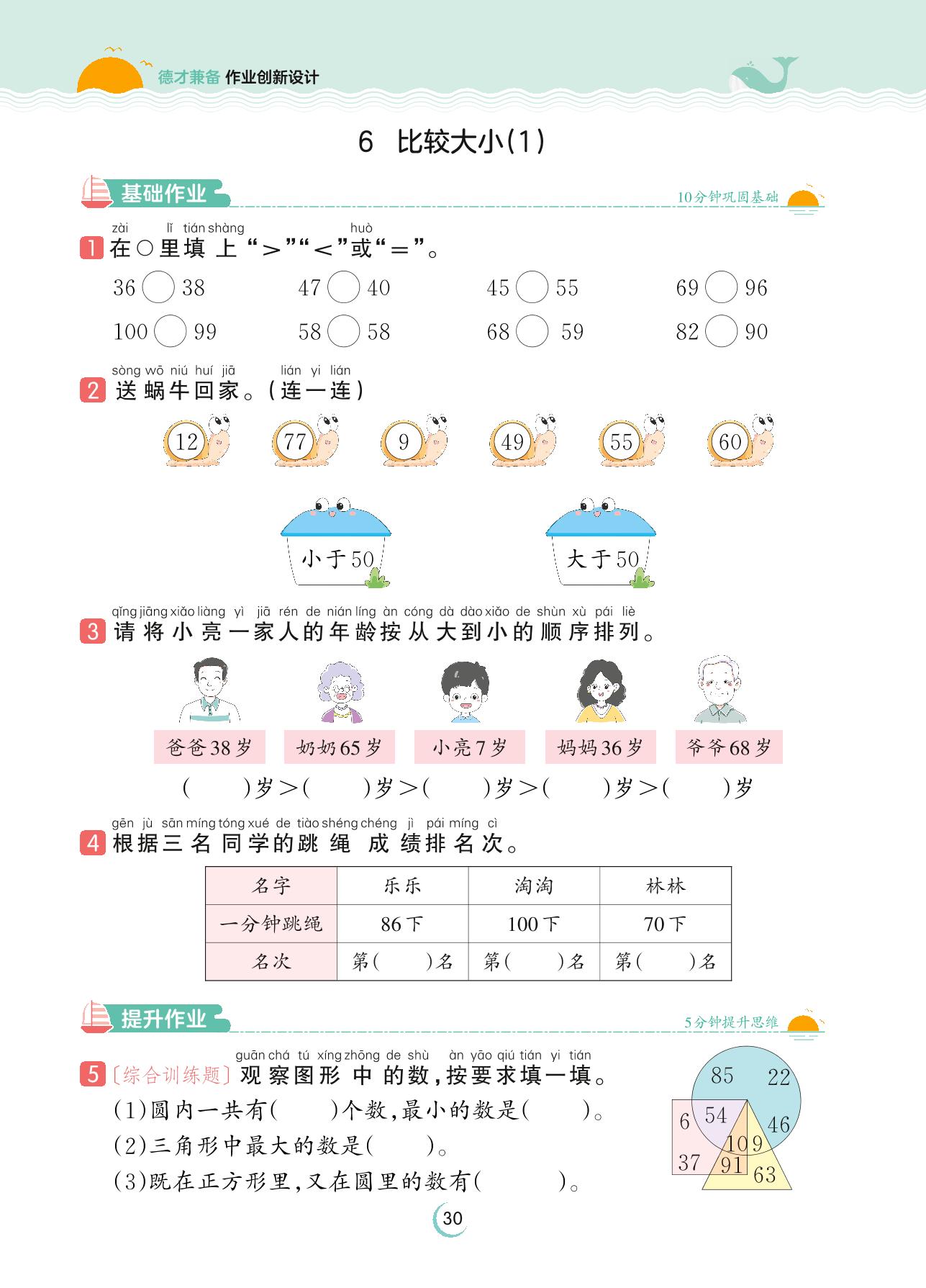 2023下册一年级数学人教版 第四单元 100以内数的认识——6 比较大小(1)