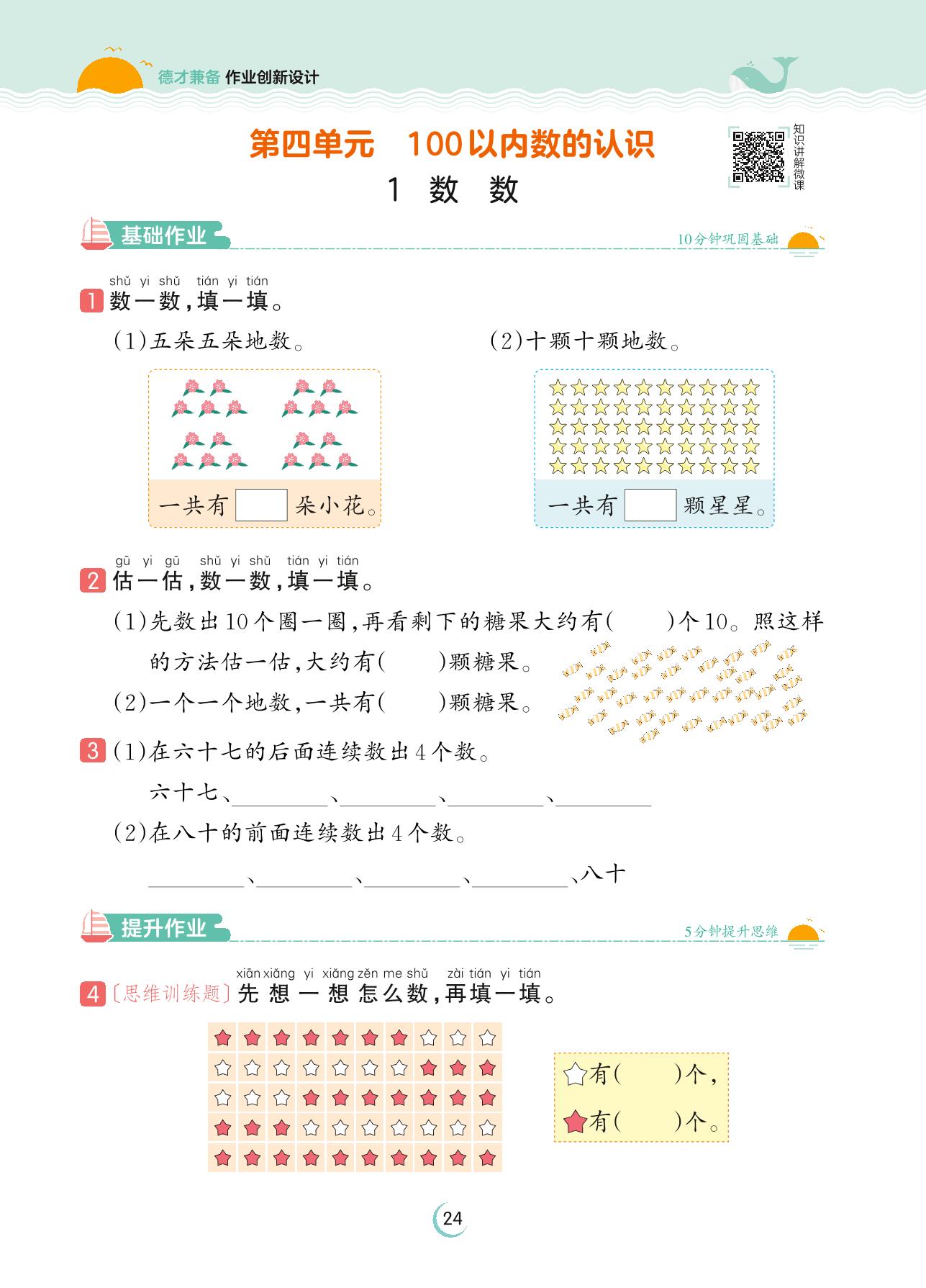 2023下册一年级数学人教版 第四单元 100以内数的认识——1 数数
