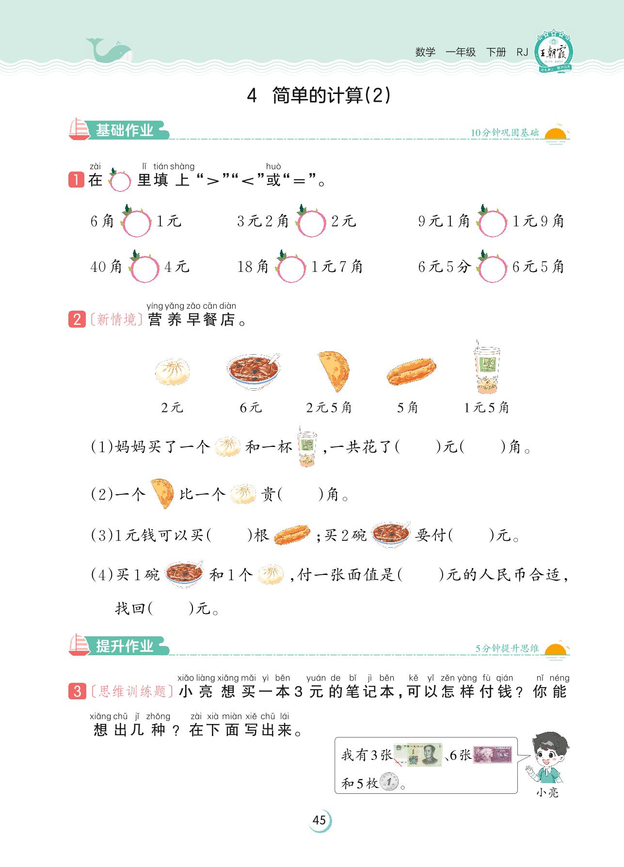 2023下册一年级数学人教版 第五单元 认识人民币——4 简单的计算(2)