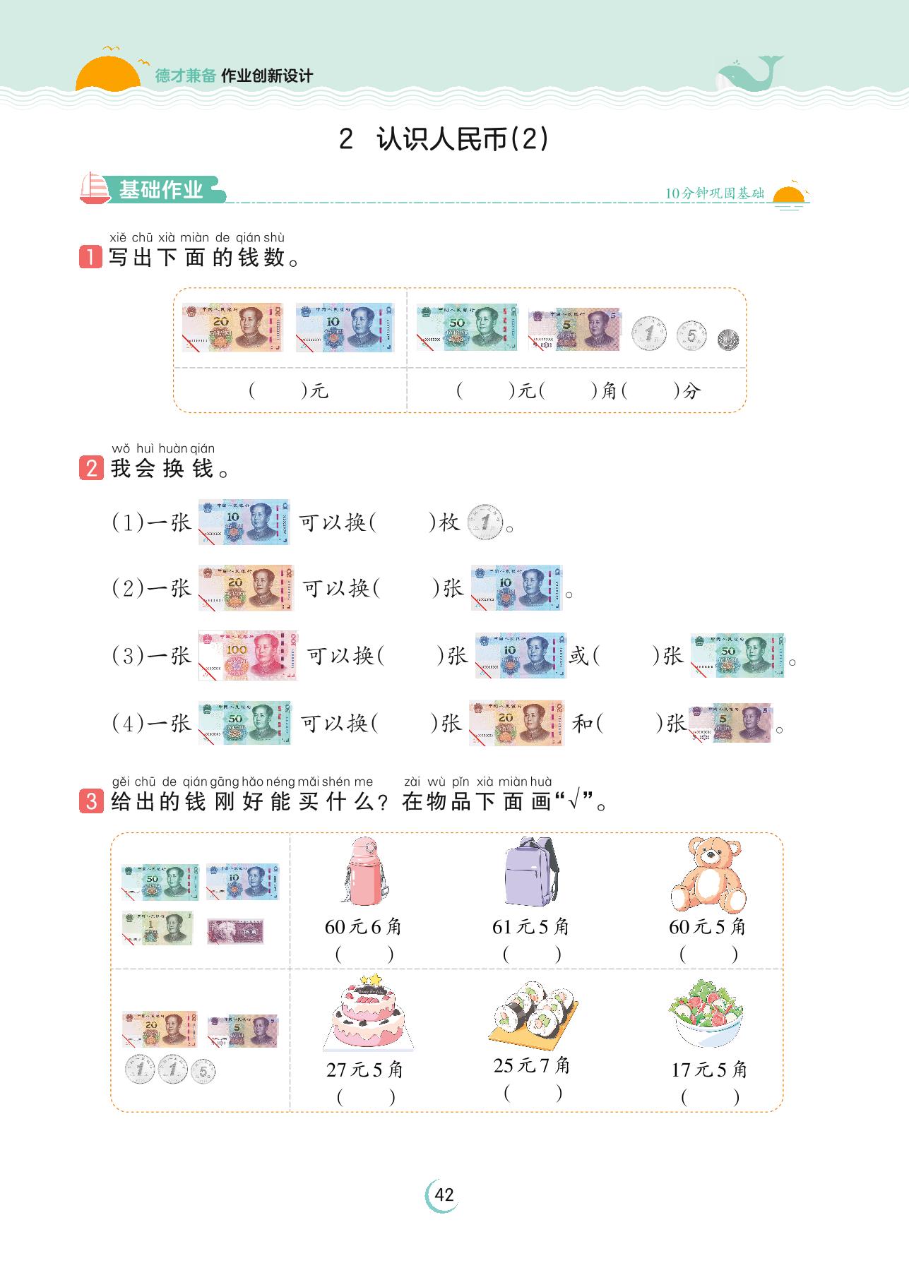 2023下册一年级数学人教版 第五单元 认识人民币——2 认识人民币(2)