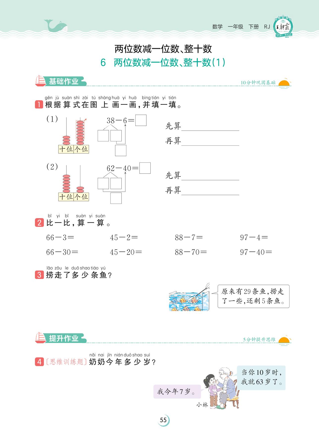 2023下册一年级数学人教版 第六单元 100以内的加法和减法(一)——6 两位数减一位数、整十数(1)