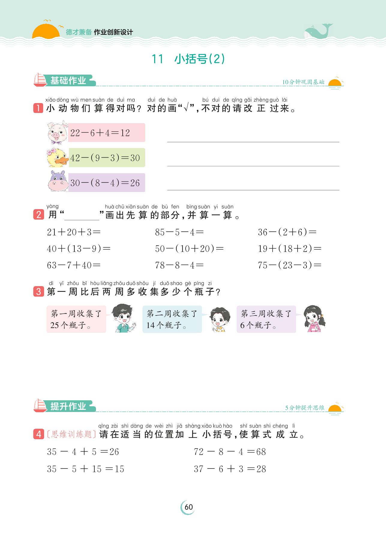 2023下册一年级数学人教版 第六单元 100以内的加法和减法(一)——11 小括号(2)